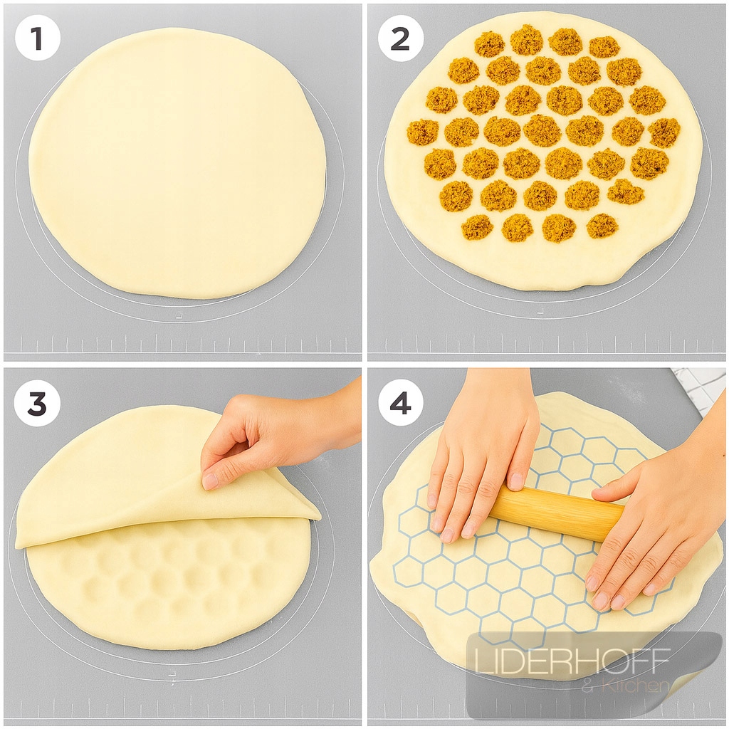 Валик притисне тісто до країв отворів і точно відріже вареників.