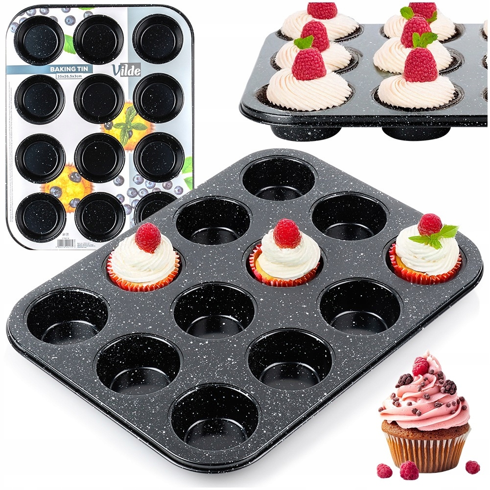 Форма для випікання 12 мафінів. Ідеально підходить для приготування мафінів, кексів, печива та інших десертів. Стане в нагоді в кожному домі, його легко мити та зручно використовувати. Виготовлений з безпечних для здоров'я та харчових продуктів матеріалів. Оригінальний продукт Vilde. Виготовлено за європейськими стандартами.