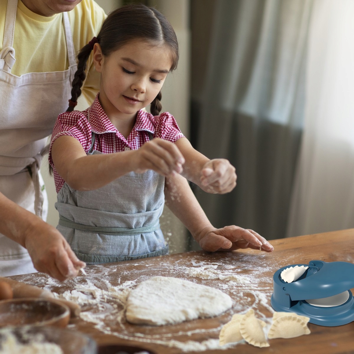 Наша пельменниця відрізняється від традиційних інструментів завдяки нековзкій конструкції ручки. Ручка та основа розроблені для підтримки ідеальної відстані, запобігаючи защемленню пальців під час використання. Крім того, невелика вага та спеціальний захист перетворюють приготування їжі з дітьми в задоволення.