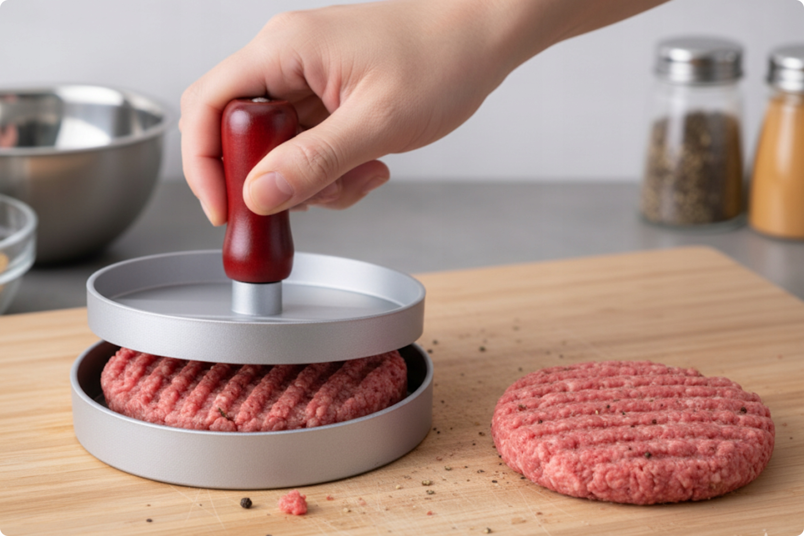 гамбургери - ідеальний інструмент, який дозволяє приготувати ідеально сформовані котлети в мить ока. Завдяки ергономічному дизайну та твердій конструкції він стане незамінним аксесуаром на кожній кухні. прискорює процес створення гамбургерів , забезпечуючи рівну товщину та форму , що перетворюється на рівномірну консистенцію смаження.