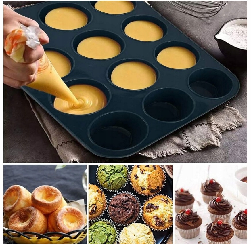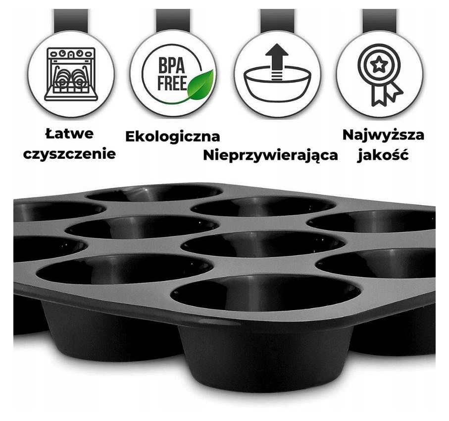 Forma silikonowa Do Muffinek Babeczek чорна, 12 прорізів