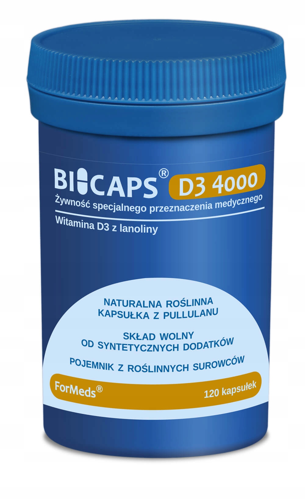 BICAPS D3 4000 містить 4000 МО природного вітаміну D (з ланоліну). Чистий склад - продукт не містить, серед іншого: штучні наповнювачі, антизлежувачі та барвники. Натуральна капсула з пулулану - отримана в процесі ферментації. Тара виготовлена з рослинної сировини.