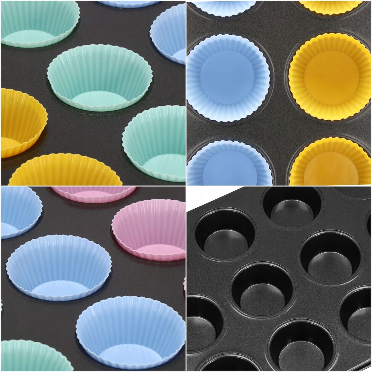 Простий і дуже практичним рішенням є форма для випікання кексів Springos у поєднанні з харчовими силіконовими формами багаторазового використання. Встановіть форми в отвори, а потім вилийте тісто, щоб отримати ідеальну випічку, наче з кондитерських вітрин.
