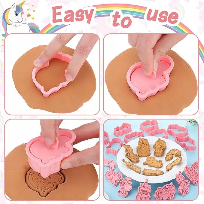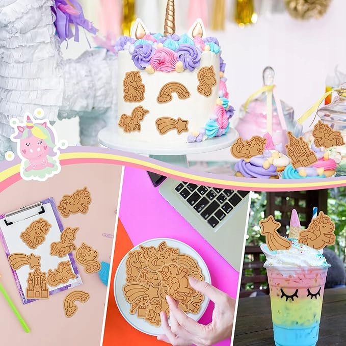 - Широке використання: ці формочки для печива з єдинорогом практичні та універсальні для приготування печива, тістечок, помадки, цукрової пасти, прикраси тортів, печива та інших десертів, ідеальних аксесуарів для печива своїми руками для дітей