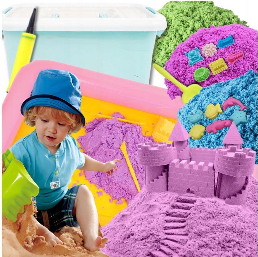 Гра в місцевій пісочниці – це те, що запам’ятається на довгі роки. Коли погода не сприяє виходу на вулицю, можна створити дитячий майданчик вдома. Все, що вам потрібно, це шматок місця для басейну, наповненого піском. Набір дозволить вам будувати різноманітні споруди, відображати тварин і створювати власні варіації та пейзажі. Цей пісок м’який, гнучкий і водночас надзвичайно стійкий, що не завадить вам будувати великі вежі.