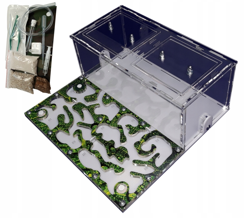 Аукціон стосується великого набору, формикаріум з великим манежем і гніздом з засувками (перегородками) + набір аксесуарів.