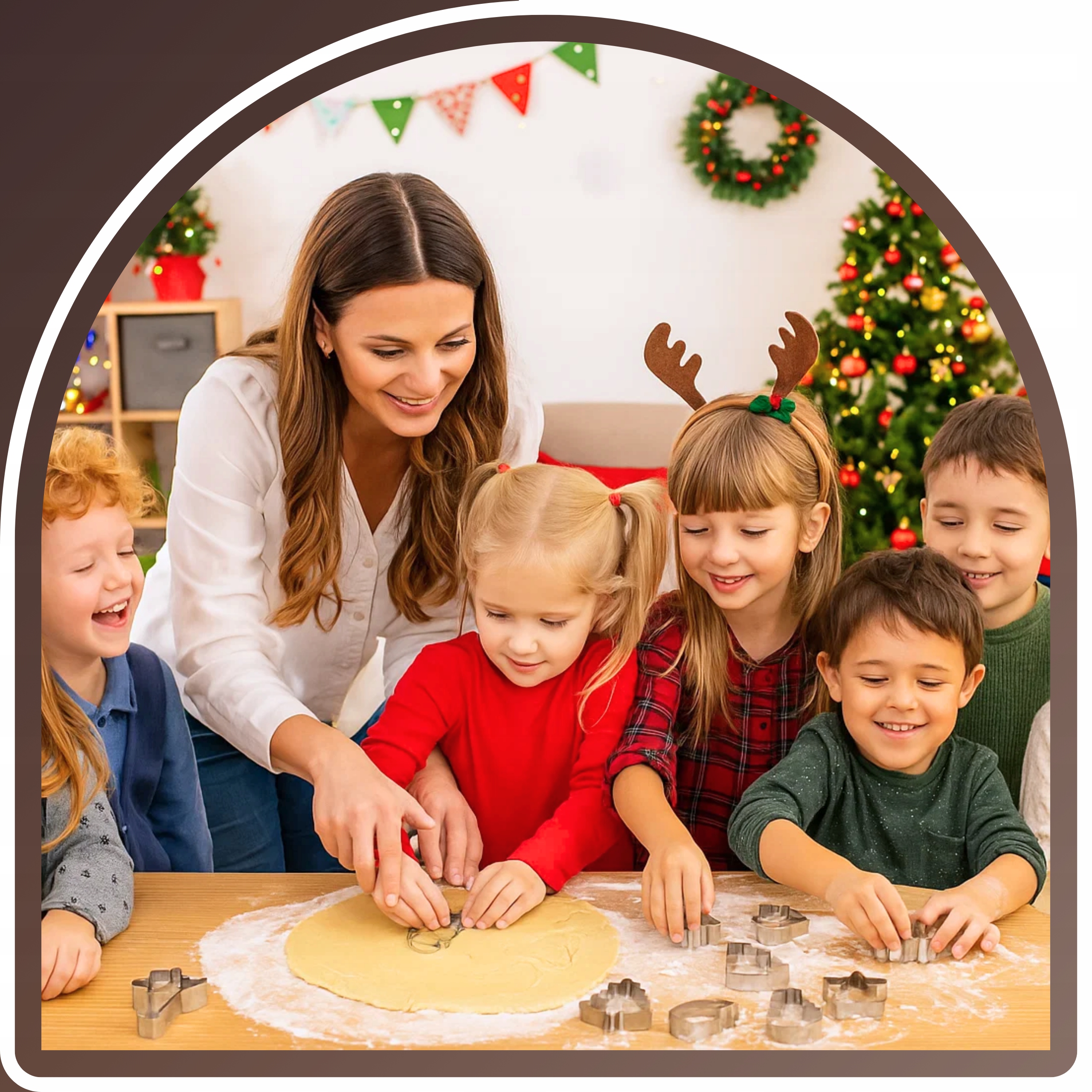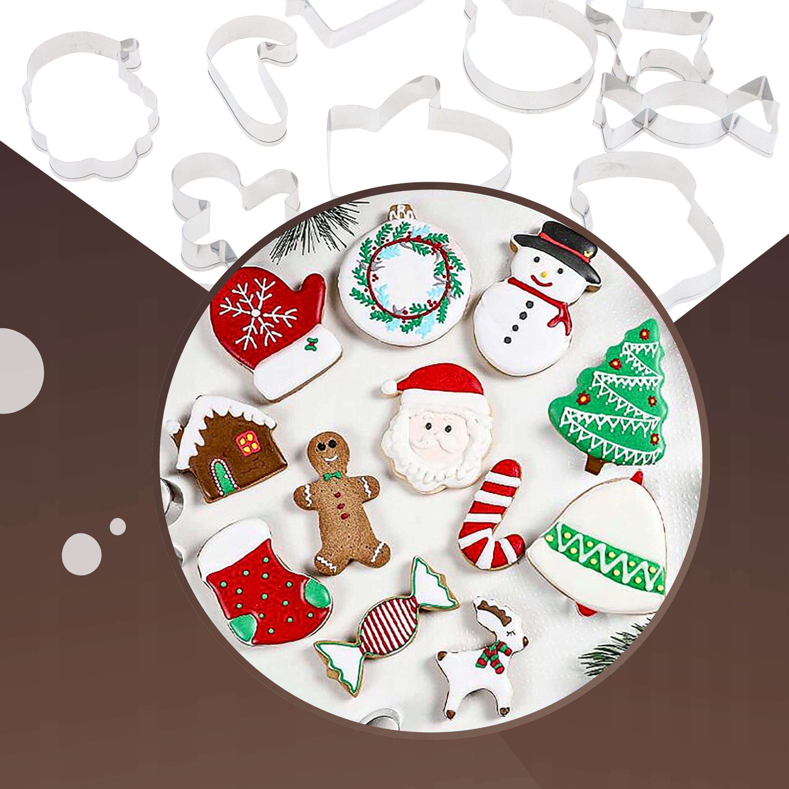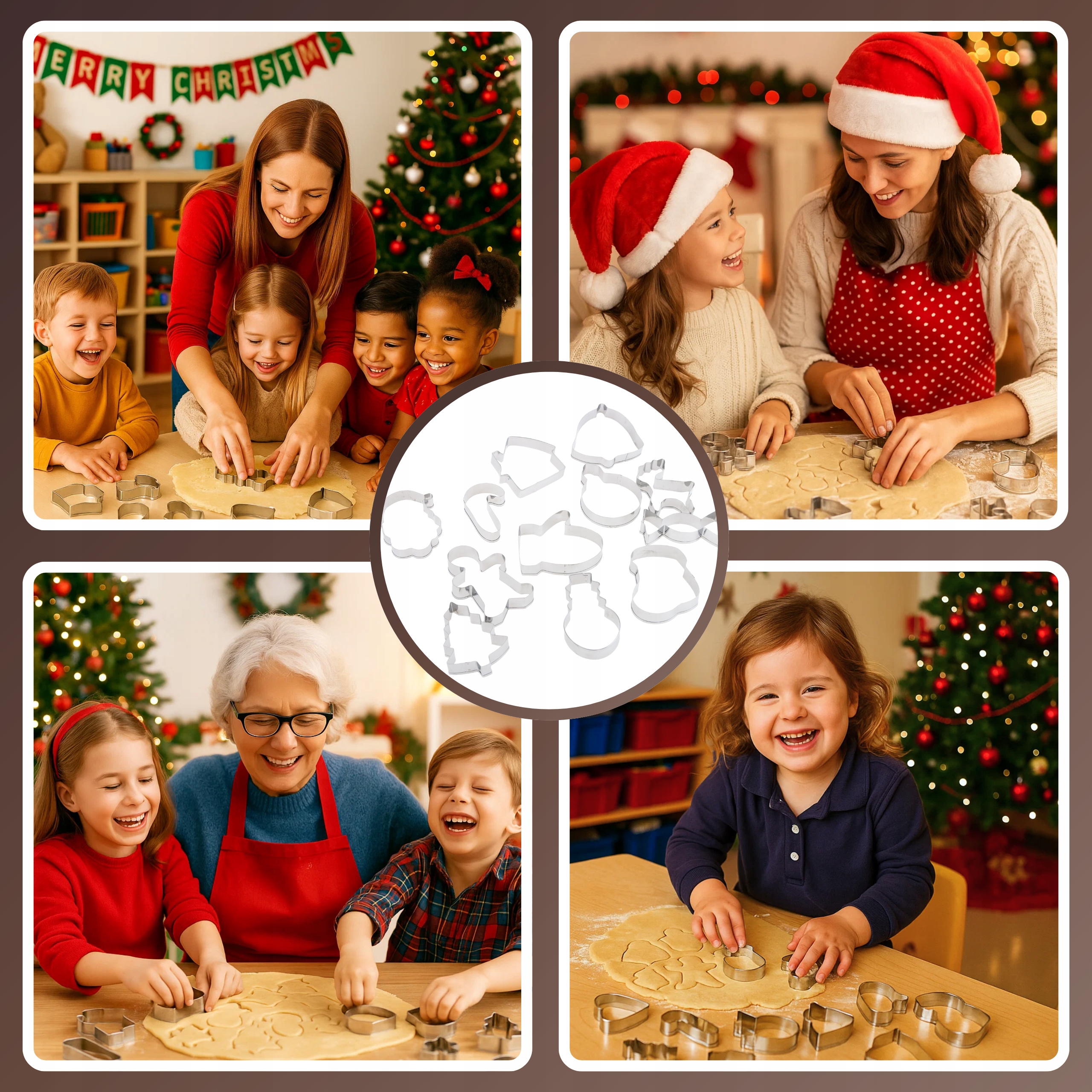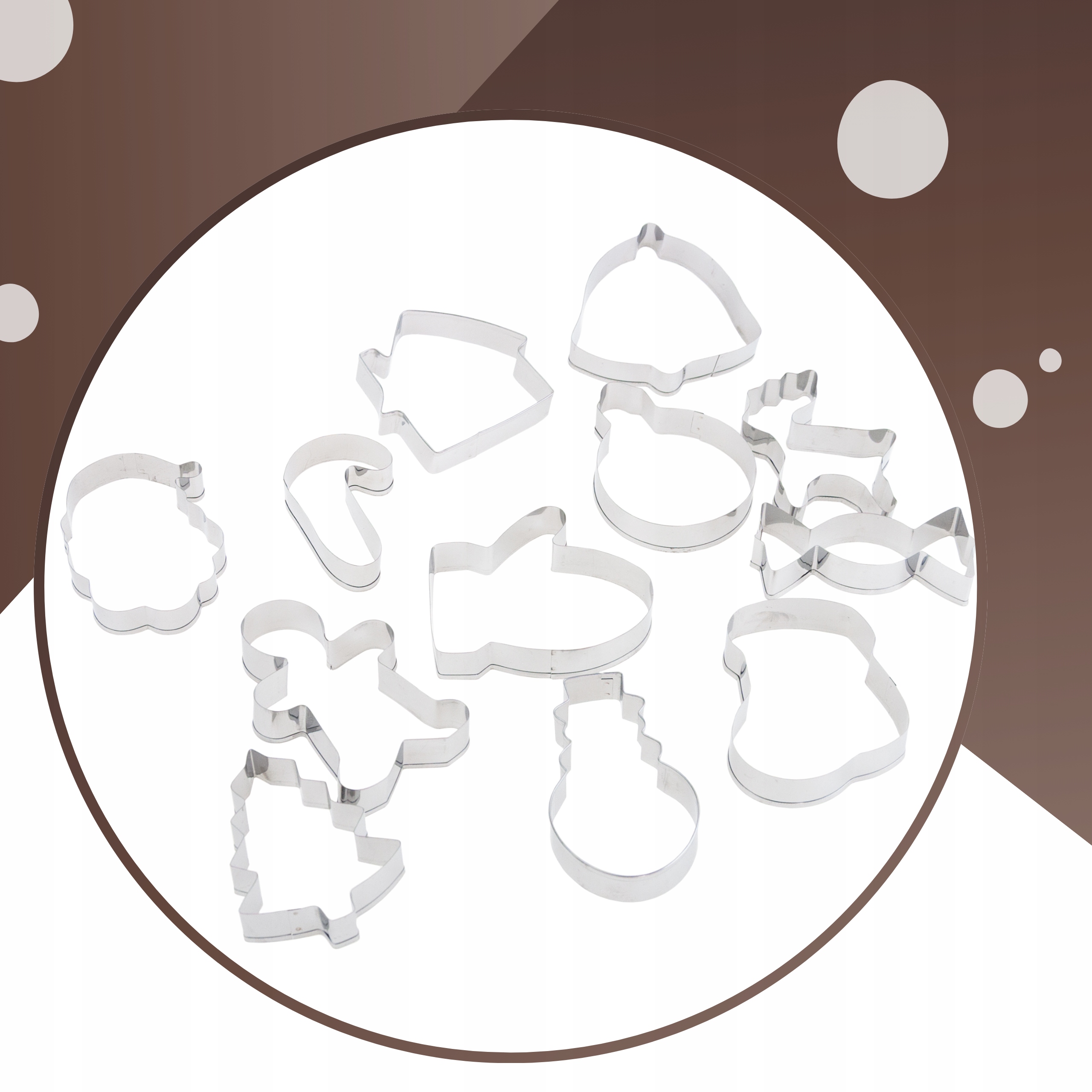 Набір із 12 суцільних металевих формочокдозволяє швидко створювати рівні красиві новорічні форми. Вони ідеально підходять для замісу тіста, солоного тіста та творчих ігор з дітьми.