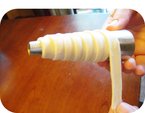 Швидко замісити тісто і добре охолодити його в холодильнику, загорнувши у фольгу. Вийняти, присипати борошном - розкачати, але дуже тонко, товщиною 1 мм. Наріжте довгими смужками, шириною близько 1,5 см. Змастіть трубочку вершковим маслом і накрутіть на неї смужки, починаючи від вужчої до ширшої частини. Одну сторону трубочки обваляйте в цукрі та покладіть на змащене олією або застелене папером деко. Випікати приблизно 15 хвилин при 200ºC. Труби повинні бути світло-золотими. Остудити, залити кремом. Крем: на цю порцію трубочок - приблизно 600 мл жирних вершків (збити, додавши в кінці 2 столові ложки цукрової пудри) або карпатських.