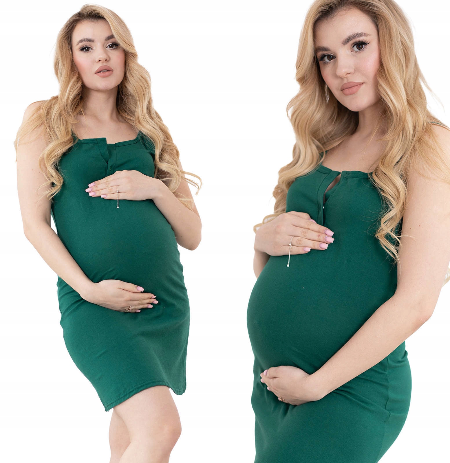 Нічна пологна сорочка з ремінцями для годування, закріпленими зеленим пресом, ви можете стримано годувати дитину.