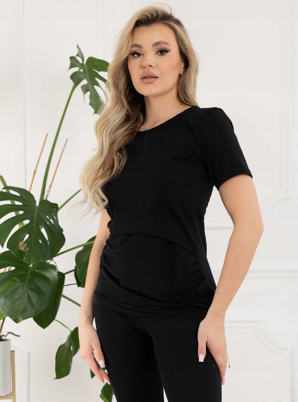 Блузка Emma ідеальна у своїй простоті! Він сподобається мамам, які цінують зручність і комфорт, тому що він ідеально підходить як основа для повсякденного та вечірнього укладання. Ідеально підходить як під час вагітності, так і після пологів. Емма має короткі рукави та класичний круглий виріз. Під грудьми має можливість годування у вигляді складки, що загинається вгору. Це рішення простіше для мам, оскільки воно дозволяє їм непомітно та комфортно годувати дитину, не відкриваючи все тіло. Блуза трохи довша, тому можете бути впевнені, що вона закриє весь живіт. Приємний і приємний на дотик матеріал ідеально сидітиме по фігурі, а волани з боків підкреслять вагітний животик. Наші блузки для вагітних виготовлені зі 100% бавовни, тож вам не потрібно турбуватися про свій комфорт чи можливу алергічну реакцію вашої дитини.