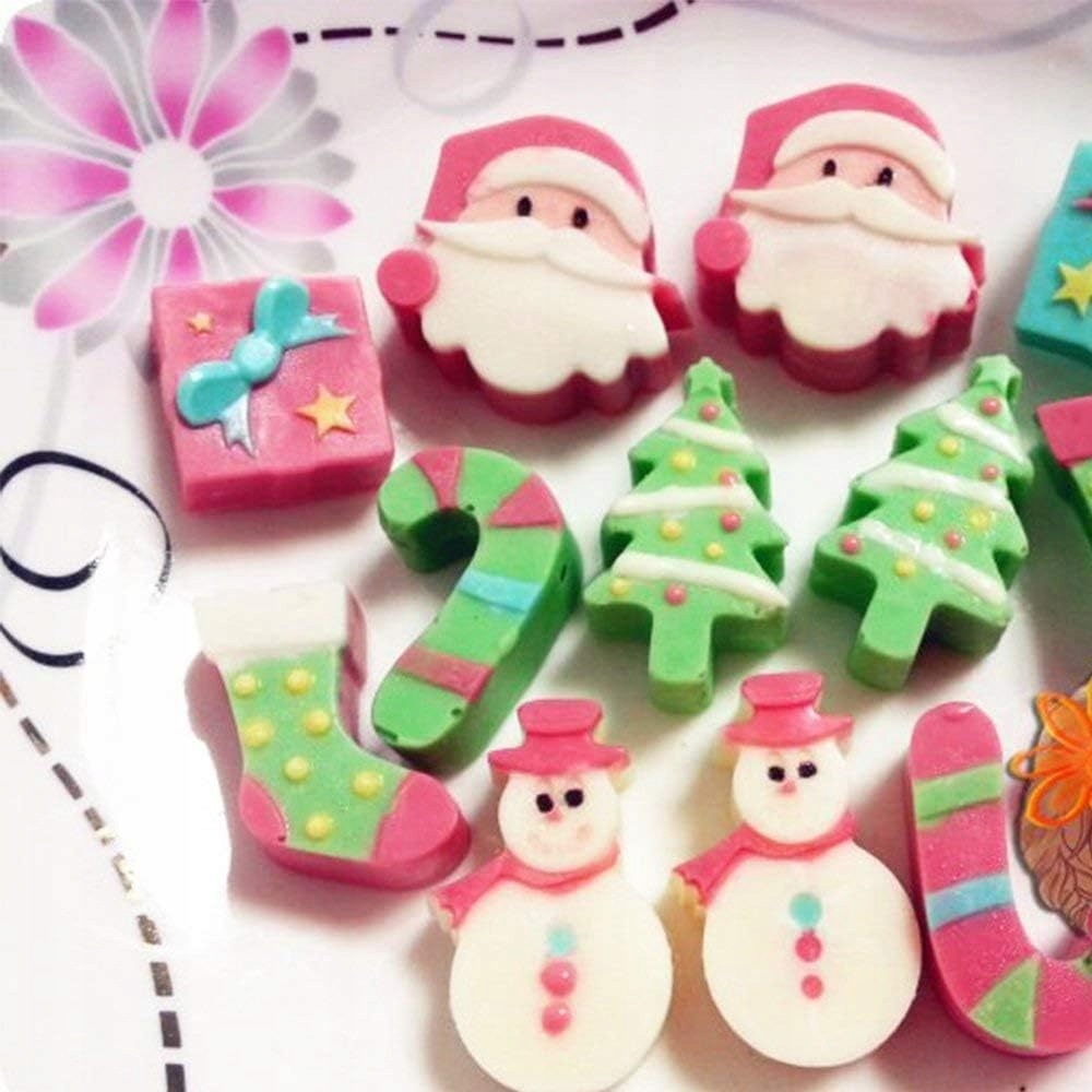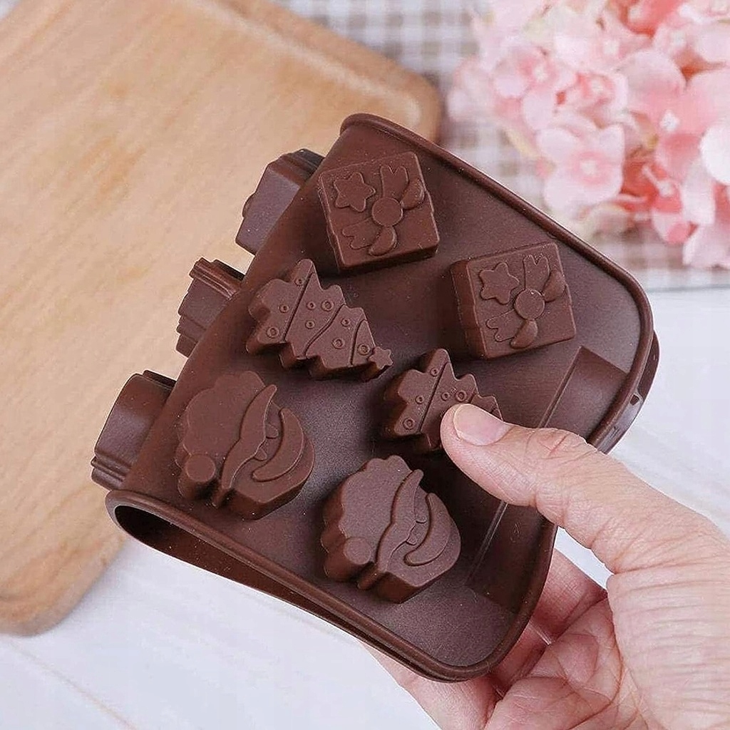 Набір силіконових форм у різдвяних дизайнах для виготовлення домашніх шоколадних цукерок та солодощів з порожнинами у формі цукру, сніговиків, подарунків, ялинки, шкарпеток та голови Санта.