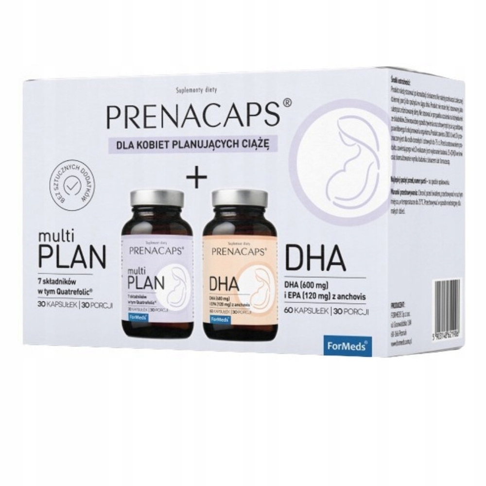 Формування Prenacaps Multiplan + DHA - це ретельно розвинена дієтична добавка для жінок, які планують вагітність, забезпечуючи необхідні поживні речовини. Формула містить комплекс вітамінів та мінералів, що підтримують здоров'я майбутньої матері та належний розвиток дитини.