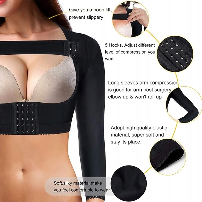 Формуючий топ із довгими рукавами, призначений для згладжування плечей, спини та корекції постави. Виготовлений з еластичної суміші нейлону та еластану, яка ідеально прилягає до тіла, забезпечуючи сильне рівномірне стиснення, зберігаючи комфорт.