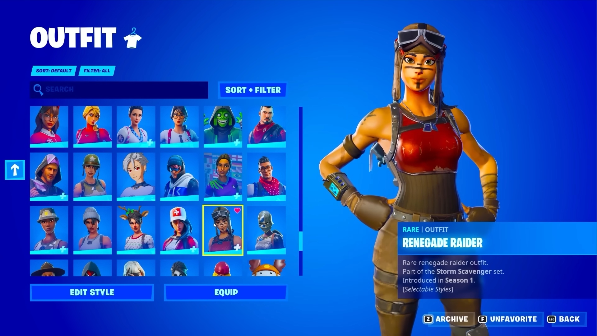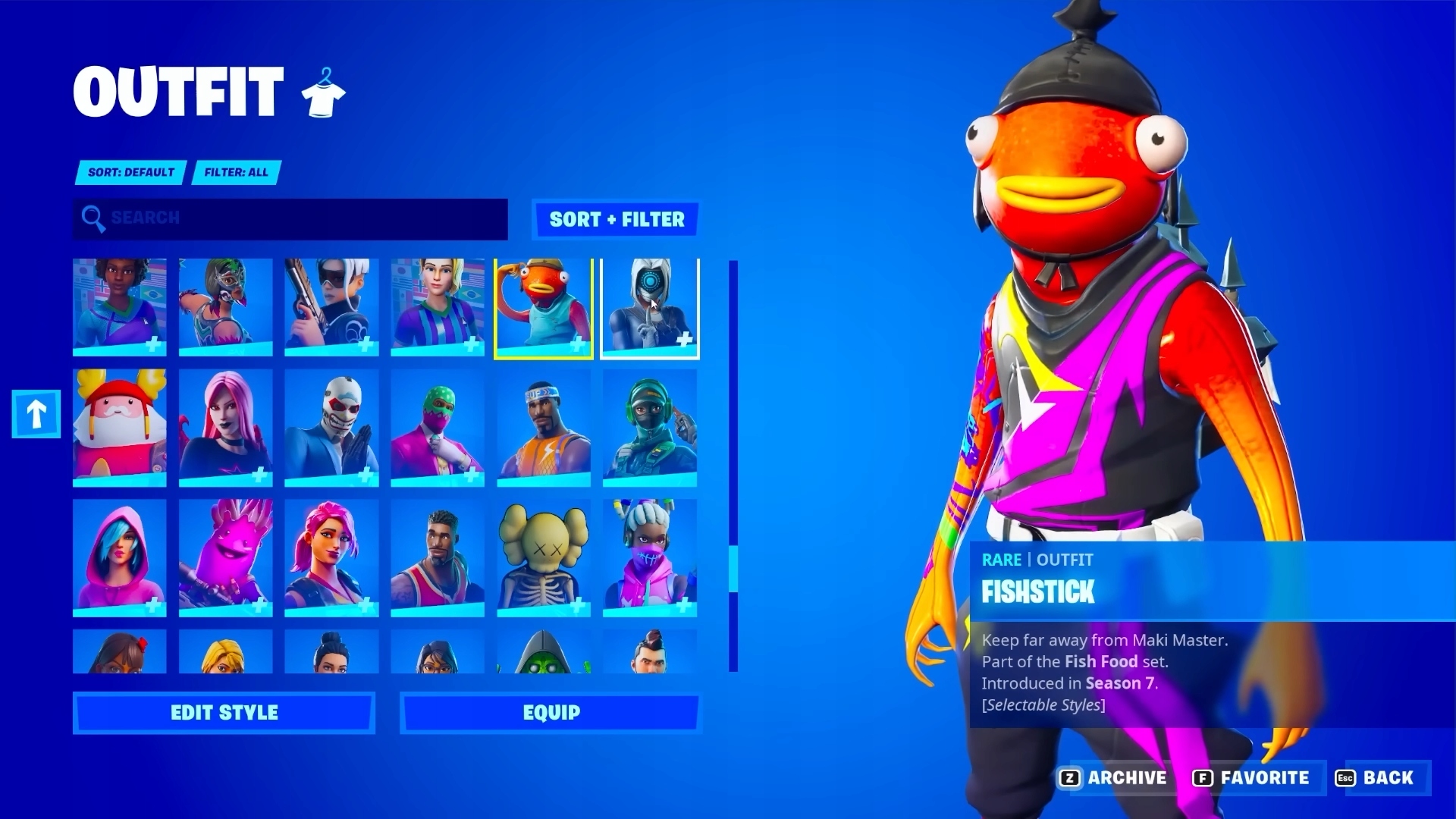 - скінів із 1 сезону до 22 ( Rege, Black, Skull, Ghoul Og, Mako, Travis, Ikonik, Galaxy, Midas...)