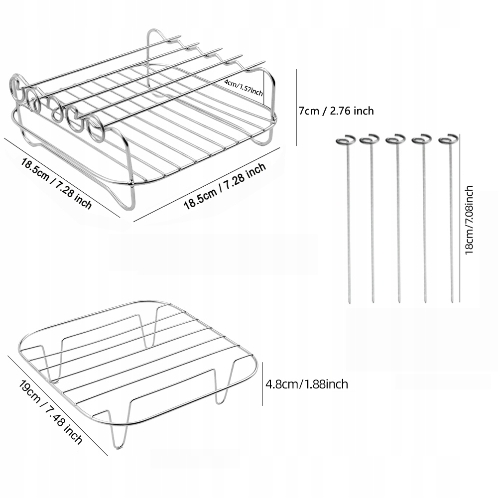 🍗【Універсальне рішення для приготування їжі з необмеженими можливостями】Від смаження картоплі фрі на повітрі та курки на грилі, випікання тортів і м’яса до приготування шашликів – цей багатофункціональний набір задовольнить усі ваші кулінарні потреби. Включає основні інструменти, такі як щітка для силіконового масла, харчові щипці, металева решітка для гриля та підставка для шампурів - ідеально підходить для щоденного приготування їжі вдома, барбекю на вихідних, кемпінгу, вечірок і святкових зустрічей. Незалежно від того, початківець ви чи досвідчений шеф-кухар, цей набір відкриває безмежні можливості для приготування, випікання та смаження на грилі з максимальною зручністю та мінімальним очищенням.
