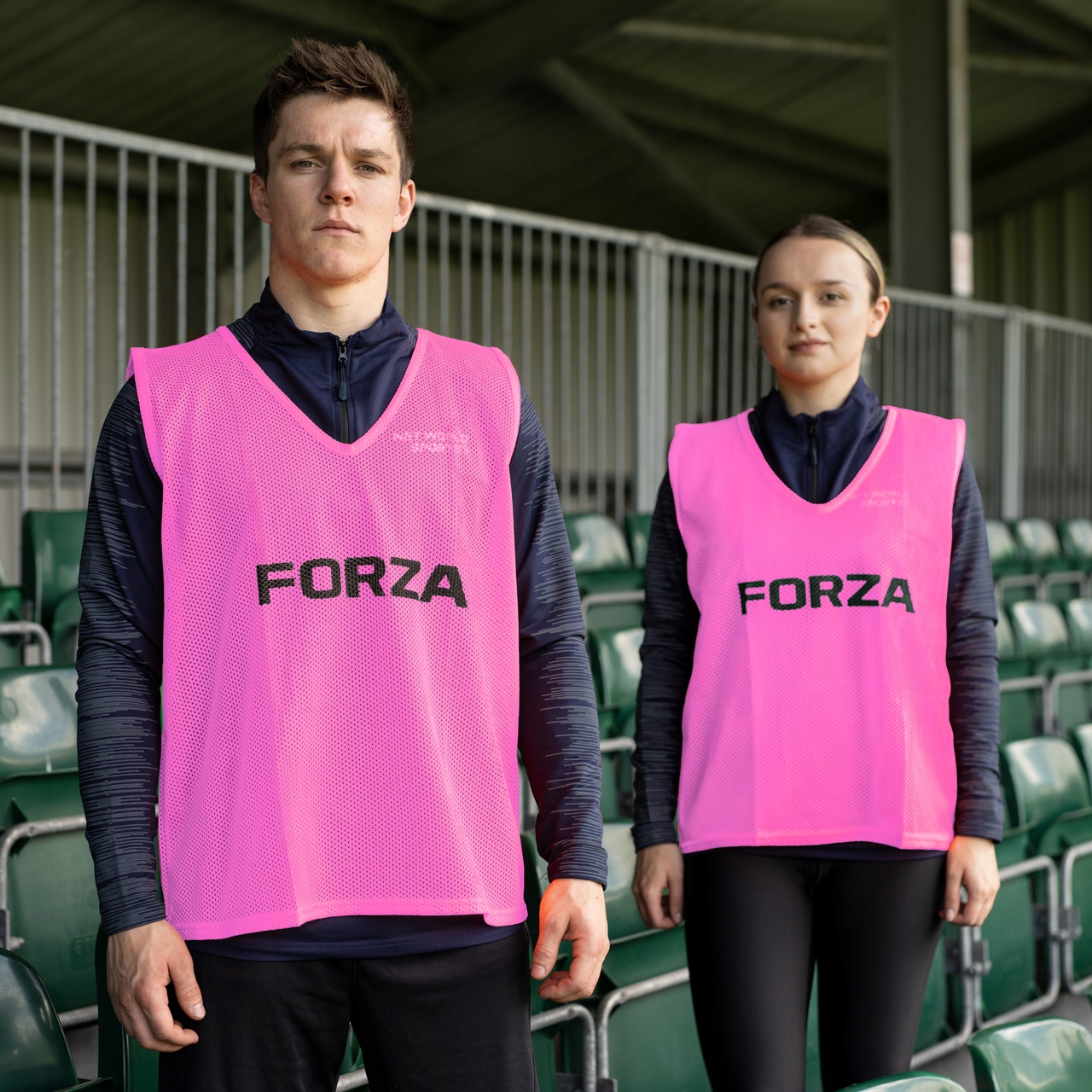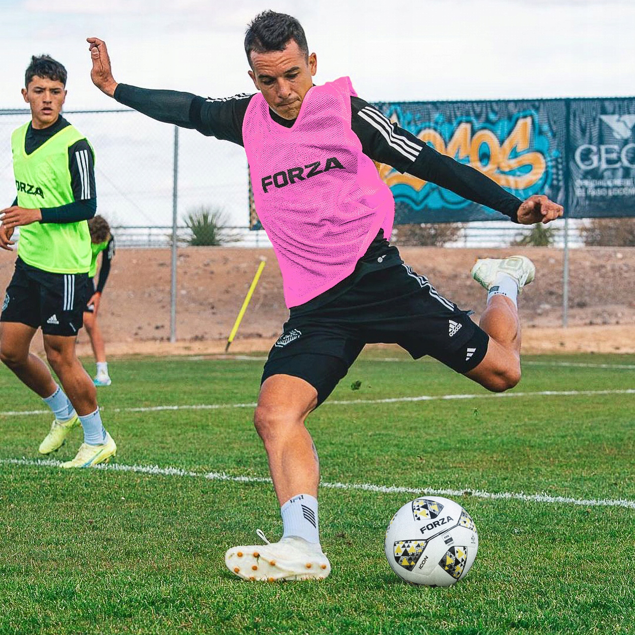 доступні у багатьох флуоресцентних кольорах, добре видимі футбольні жилети Forze гарантують, що ви ніколи не пропустите свого партнера.