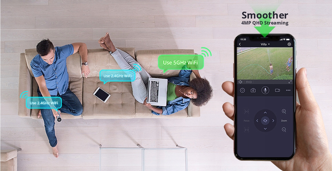 Ця зовнішня камера підтримує дводіапазонний 2,4 Wi-Fi -Fi g/5 ГГц, що забезпечує максимальну гнучкість і продуктивність, що забезпечує плавне потокове передавання QHD з роздільною здатністю 4,0 мегапікселя.