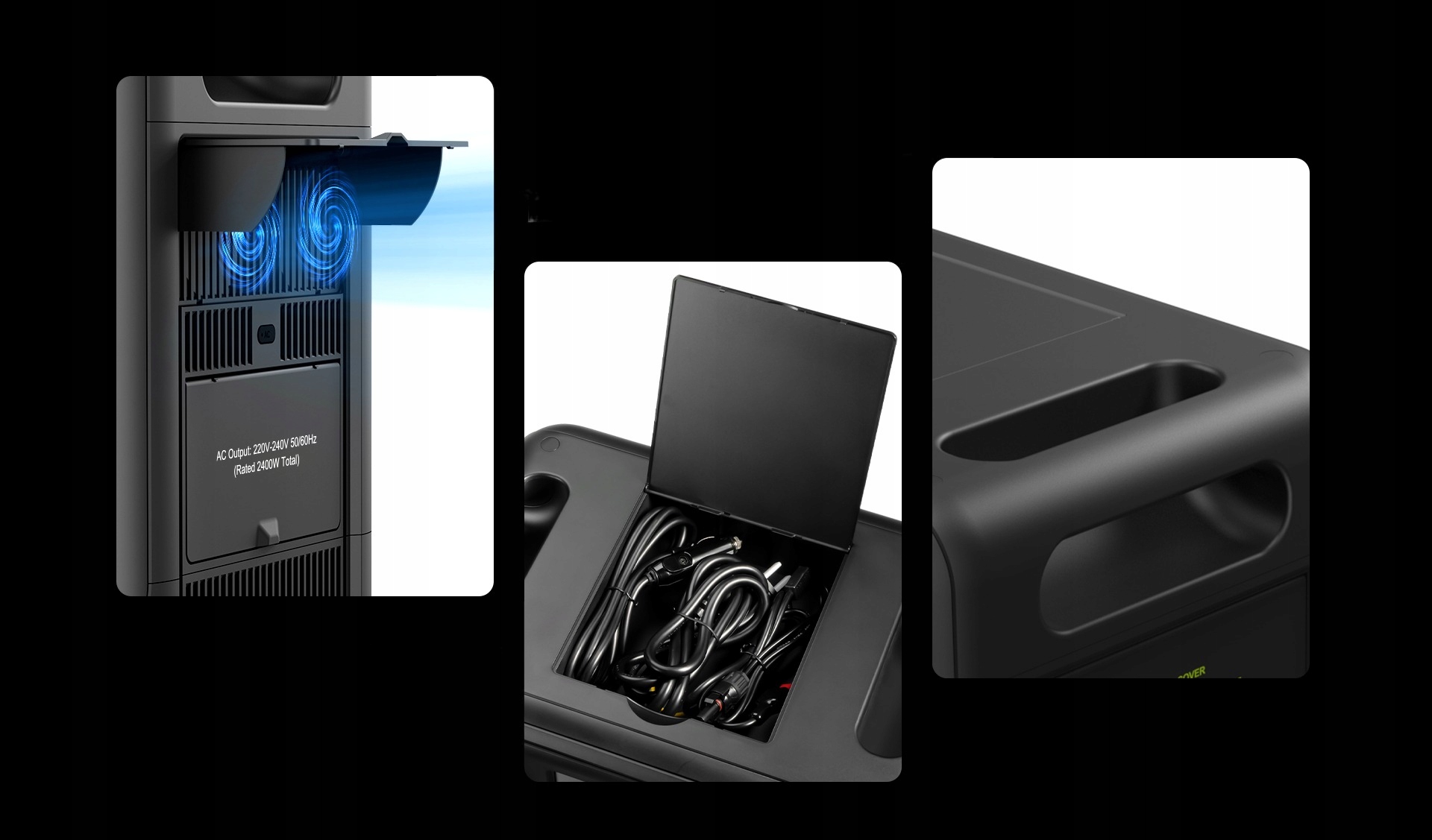 Подвійні алюмінієві ручки полегшують транспорт, а інтегрована коробка для зберігання забезпечує порядок у зарядних кабелях. вентилятори з подвійною стороною забезпечують ефективне охолодження, а HD -сенсорний екран відображає потужність, напругу та температуру в режимі реального часу.