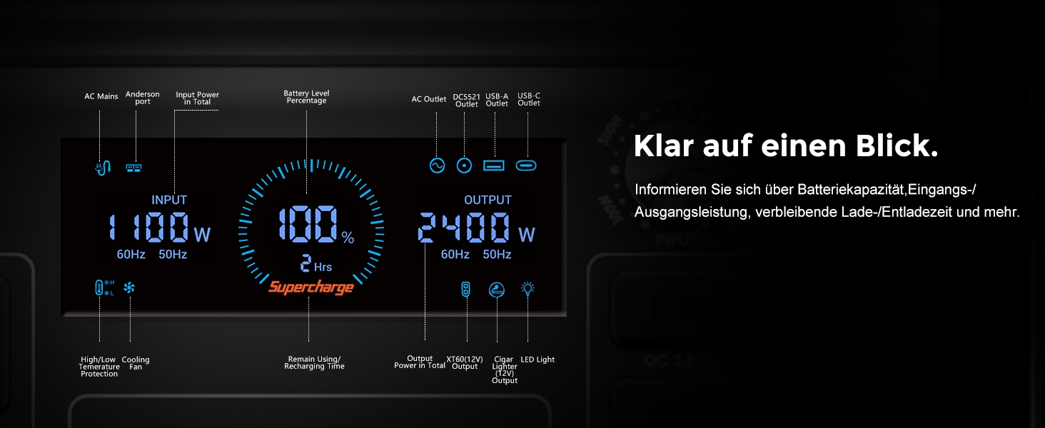 FOSSiBOT F2400 přenosná napájecí station, 2048Wh 2400W powerstation XT90 BT