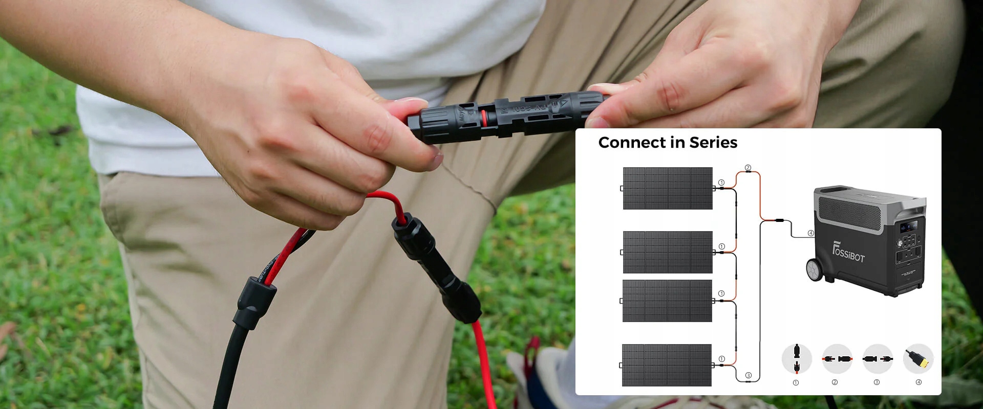 sp420 для відмінного вибору для власників генераторів Fossibot F3600. Поєднуючи чотири панелі SP420, можна повністю зарядити генератор всього за 2 години та 16 хвилин. Панель сумісна з більшістю сонячних генераторів, доступних на ринку, що робить її універсальним рішенням для всіх закоханих відновлюваної енергії.