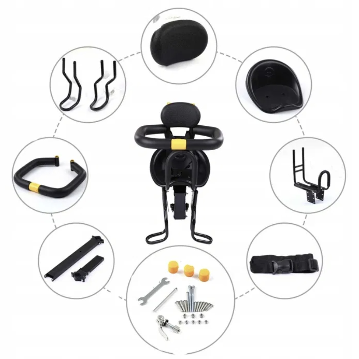 Fotelik rowerowy dla dziecka na przednią ramę bezpieczny do 25kg