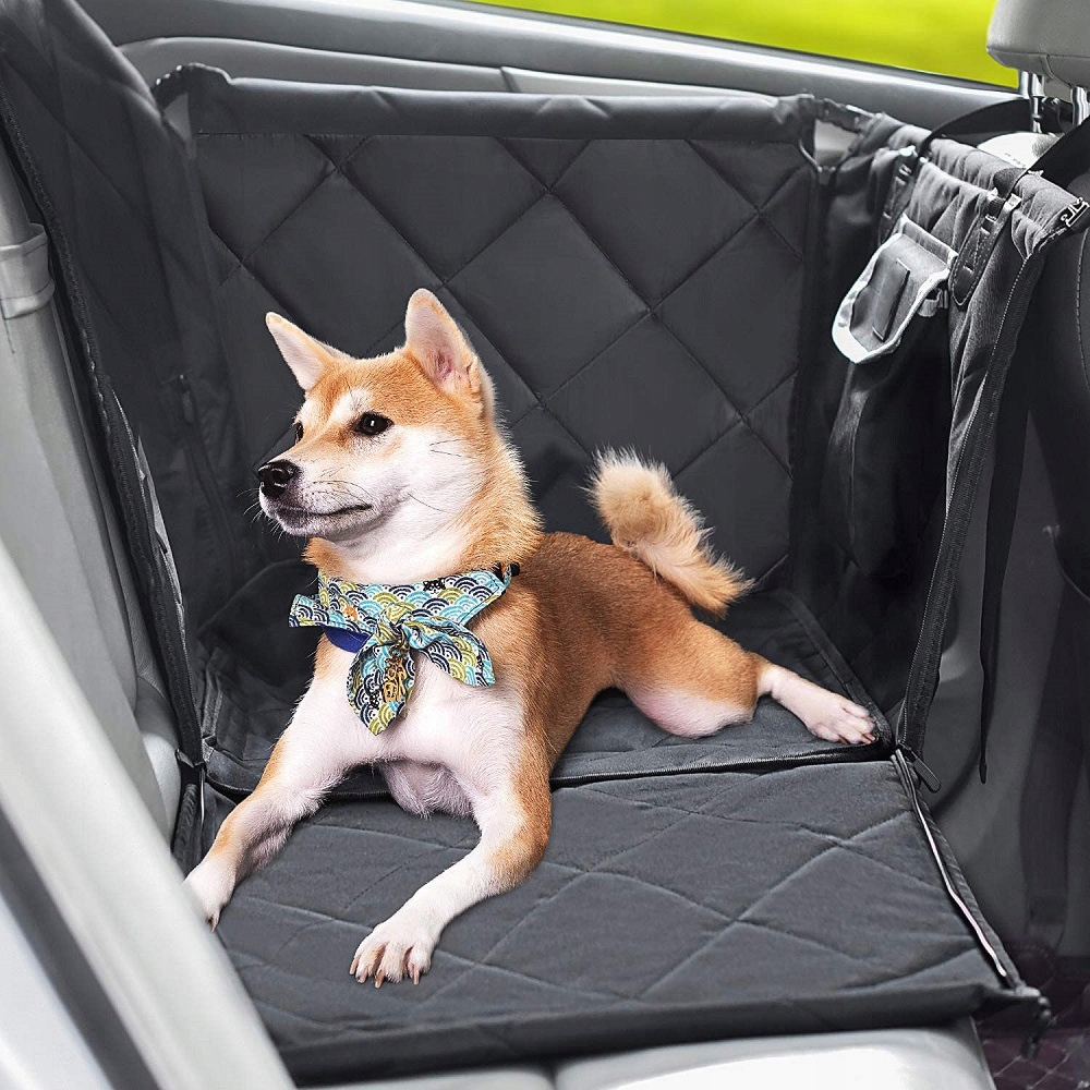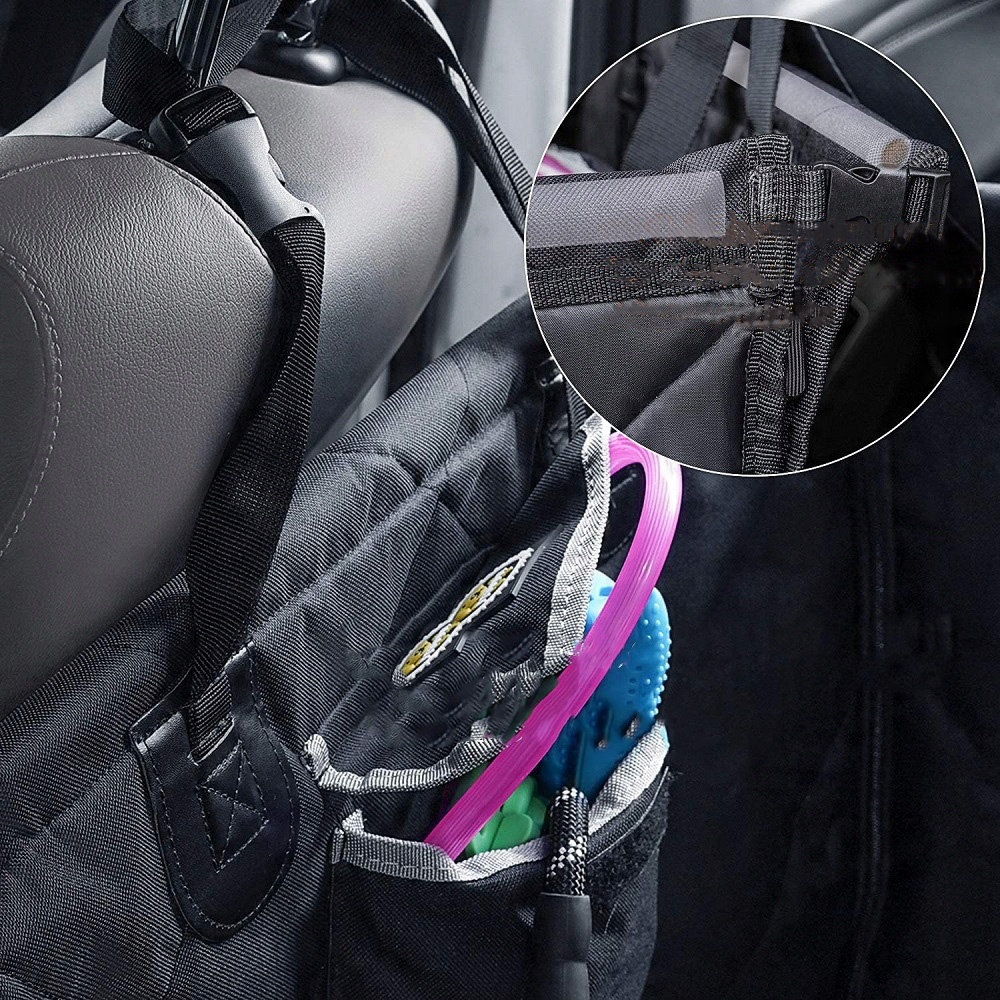 Переноска для собаки в машину має 4 повзунки, тому ви можете налаштувати її відповідно до своїх потреб. Застебнувши всі блискавки, ви створите дитячий манеж, який захистить оббивку та двері автомобіля від забруднення та пошкодження. Можна відстібнути один із бортів, щоб собака самостійно застрибнула в машину. Коли ви зможете його ввімкнути, розстебніть блискавку з боку пасажира та розгорніть килимок для заднього сидіння. Його збірка швидка та інтуїтивно зрозуміла, просто прикріпіть кріплення до підголівників сидінь, і тоді ви зможете згорнути його в мінімальний рулон, який висить за переднім сидінням. Внутрішня кишеня для зручного транспортування аксесуарів для домашніх тварин, наприклад повідця або аксесуарів.