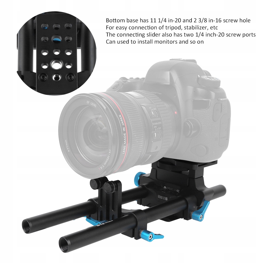 3. Нижня основа має отвір для болта 11 1/4 дюйма-20 та 2 3/8 CALA-16, що полегшує підключення штатива, стабілізатора тощо. З'єднувальний повзунок також має два отвори на 1/4 дюймові болти, які можна використовувати для встановлення моніторів і так далі.