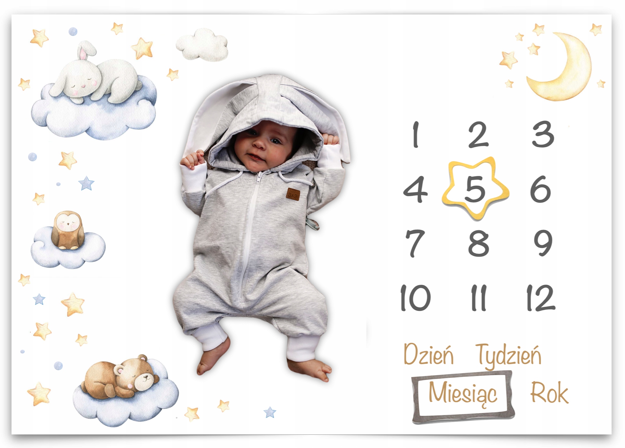 Foto kocyk z polskimi napisami Miękki kocyk do zdjęć dla dziecka + ramki x2
