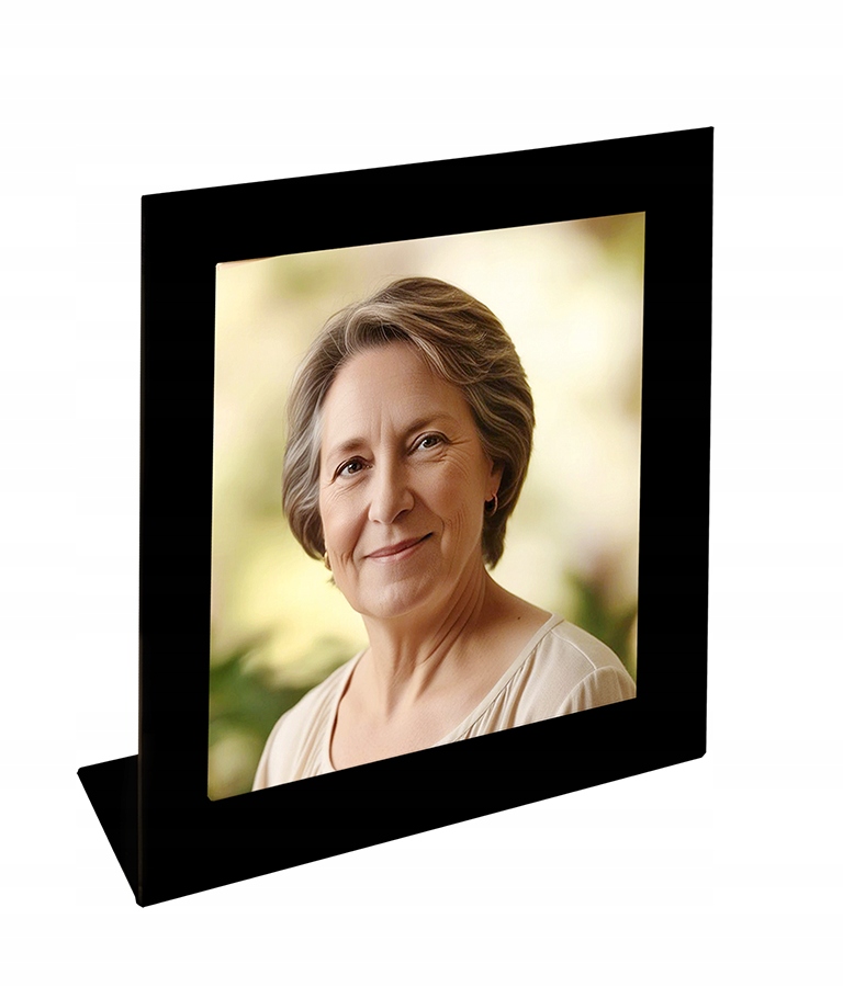 - Фото, надруковане на прозорому оргсклі, наклеєному на раму з чорного оргскла, розмір: 16 х 16 см, товщина 3 мм.