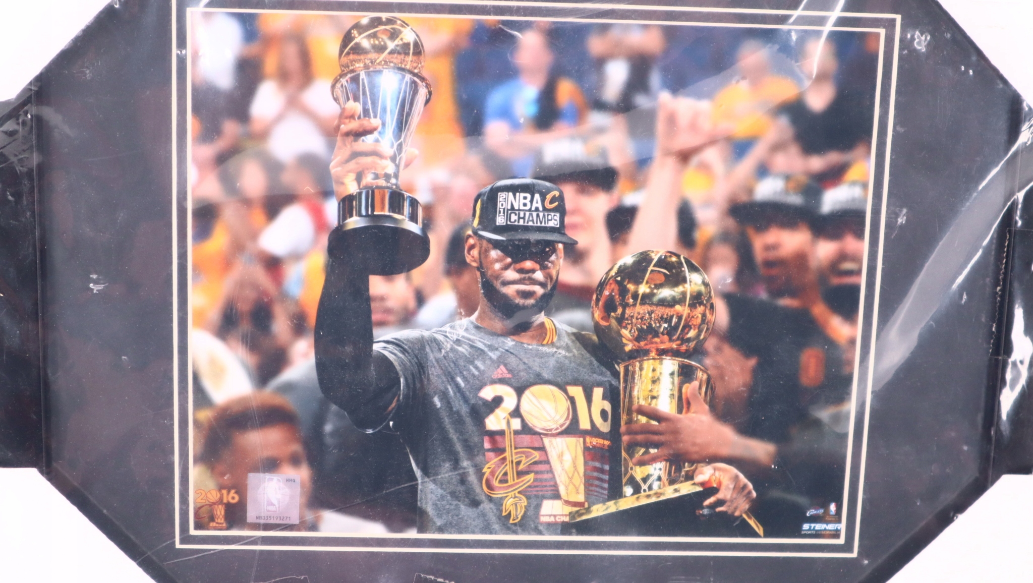 Рамка та колекційна фотографія Леброна Джеймса, який представляє «Клівленд Кавальєрс», зі святкування чемпіонства НБА 2016 року.