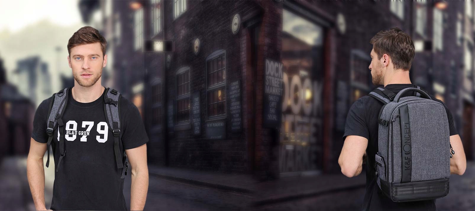 Має дві додаткові кишені: невелика бічна кишеня для дрібних аксесуарів і передня для документів, книги або журналу (під написом K&F Concept).