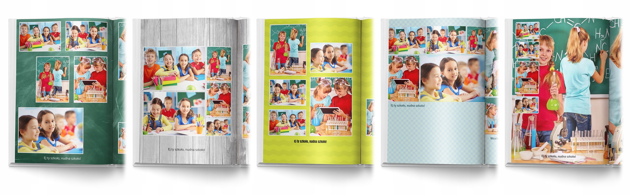 На зображенні вище показано 5 різних фотокниг. Але ви впевнені? Подивіться уважно. Кожна книга містить абсолютно однакові фотографії та однакові тексти. Це наш новий підхід до дизайну фотокниги. Спочатку ви створюєте контент. Ви вибираєте, яке фото має бути на якій сторінці, і вводите текст. Потім ви думаєте про форму. Ви можете змінювати дизайн книги, кольори, шрифти. Поки ви не будете задоволені. Як тільки ви це зробите, цей підхід здасться очевидним. Але чому на інших аукціонах вам спочатку потрібно визначитися із зовнішнім виглядом книги (дизайном), а потім, якщо ви хочете його змінити, потрібно починати всю роботу заново?