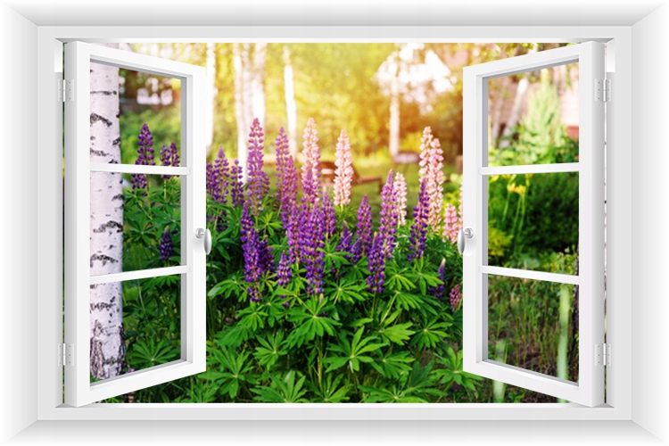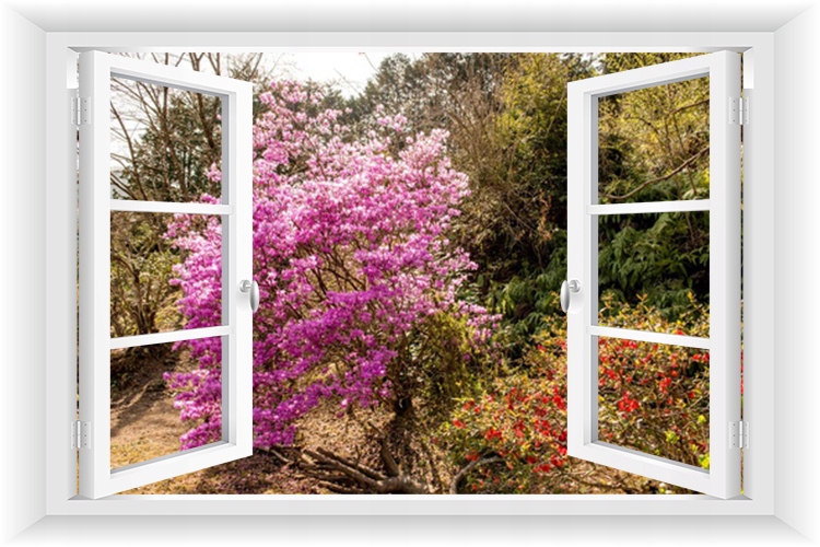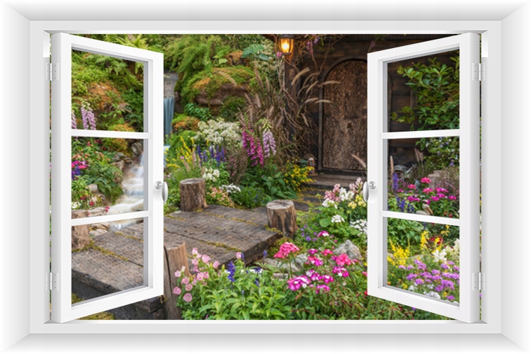 Фото шпалери вікно 3D сад пергола квіти 150x100