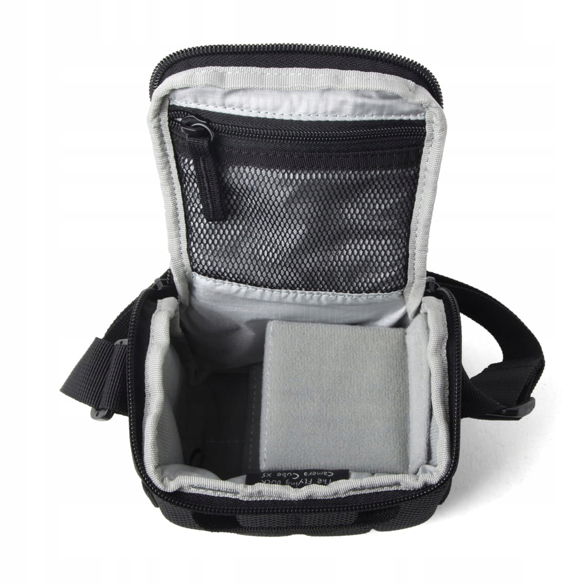 Скручування літаючої качки XS - це невелика, зручна чорна сумка камери. У головній камері з повзуном системна камера або основна дзеркальна камера з об'єктивом можна безпечно зберігати та захищати. Сумку для камери можна носити по -різному завдяки регульованим плечовим ремінцям, зробленим зі стрічки. Обкладинка дихаючої сітки забезпечує комфорт.