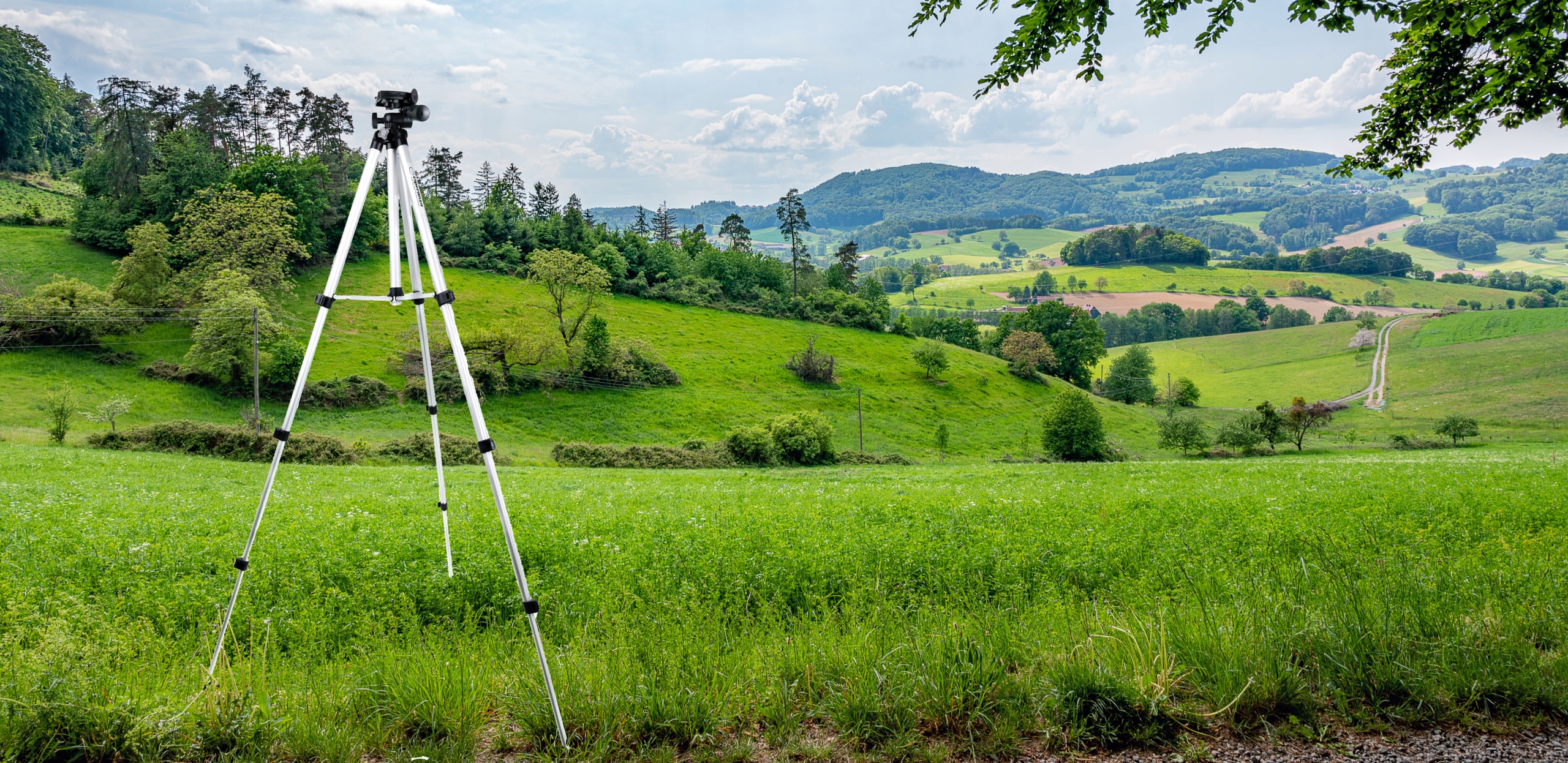 Три телескопічні ніжки штатива розгортаються незалежно, тож ми можемо регулювати штатив на будь-якій, навіть нерівній поверхні. вбудований ватерпас забезпечує підтримку рівня. Протиковзкі ніжки міцно тримають землю.