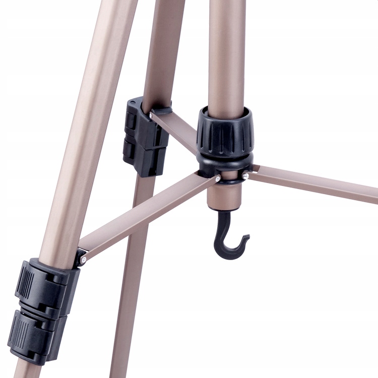 - Постійно встановлений гак — дозволяє підвішувати додатковий баласт і підвищувати стійкість штатива (важливо під час встановлення важких камер або відеокамер)