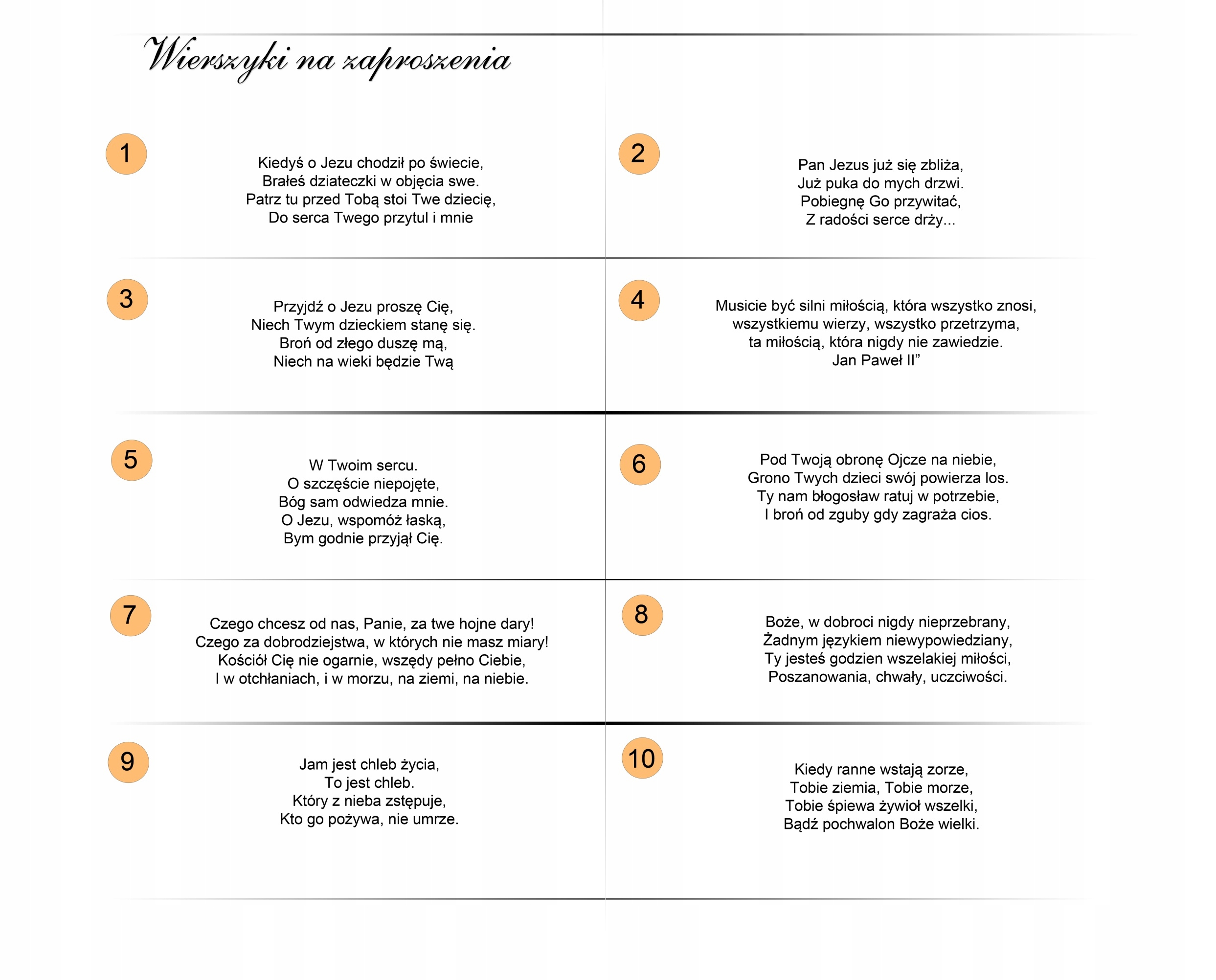 - текст для обкладинки запрошення (наприклад, Запрошення до Святого Причастя Піотрусії 10 травня 2013 р.),