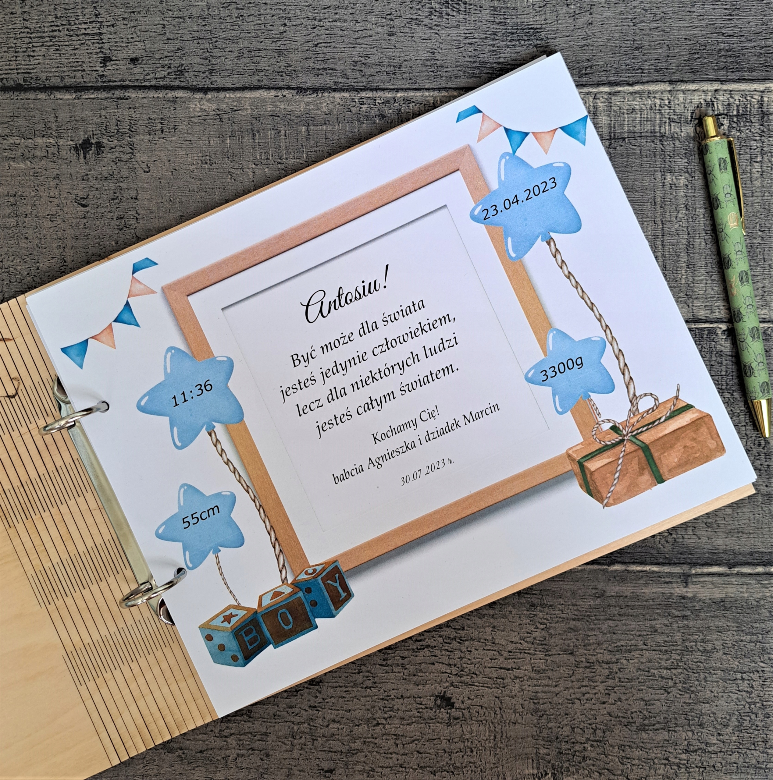 На сторінках альбому ми залишили місця, де батьки дитини зможуть послідовно доповнювати інформацію про розвиток своєї дитини та згадувати найбільше важливі моменти життя малюка з фотографіями.