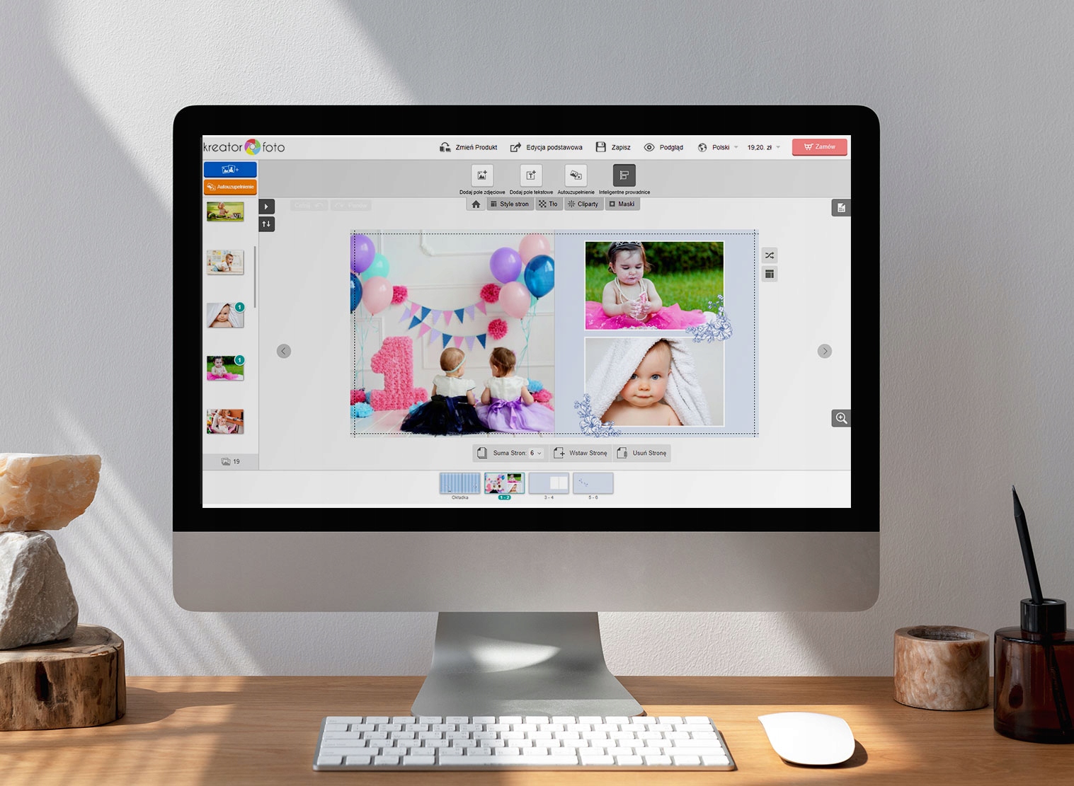 Ваш альбом не має бути нудним. Додайте власний текст, кліпарт і фон, щоб оживити свій альбом. Змініть форму вашої фотографії, додавши маску, або покращте її якість за допомогою безкоштовної функції автокорекції. У розширеному режимі редагування ви також знайдете такі параметри, як зміна форми та пропорцій, додавання рамки, ефектів, тіні та маски. Оформлення альбому буде суцільним задоволенням!