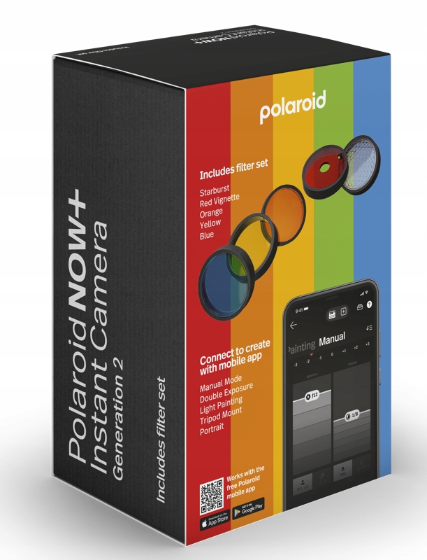 Polaroid Now+ Gen2 має декілька цікавих нових функцій – однією з нових є можливість під’єднати камеру до смартфону та новий, оновлений Polaroid додаток Просто відкрийте програму та виберіть такі функції, як малювання світлом, подвійна експозиція, ручний режим тощо. Покращена програма також включає дві нові функції – пріоритет діафрагми та режим штатива.