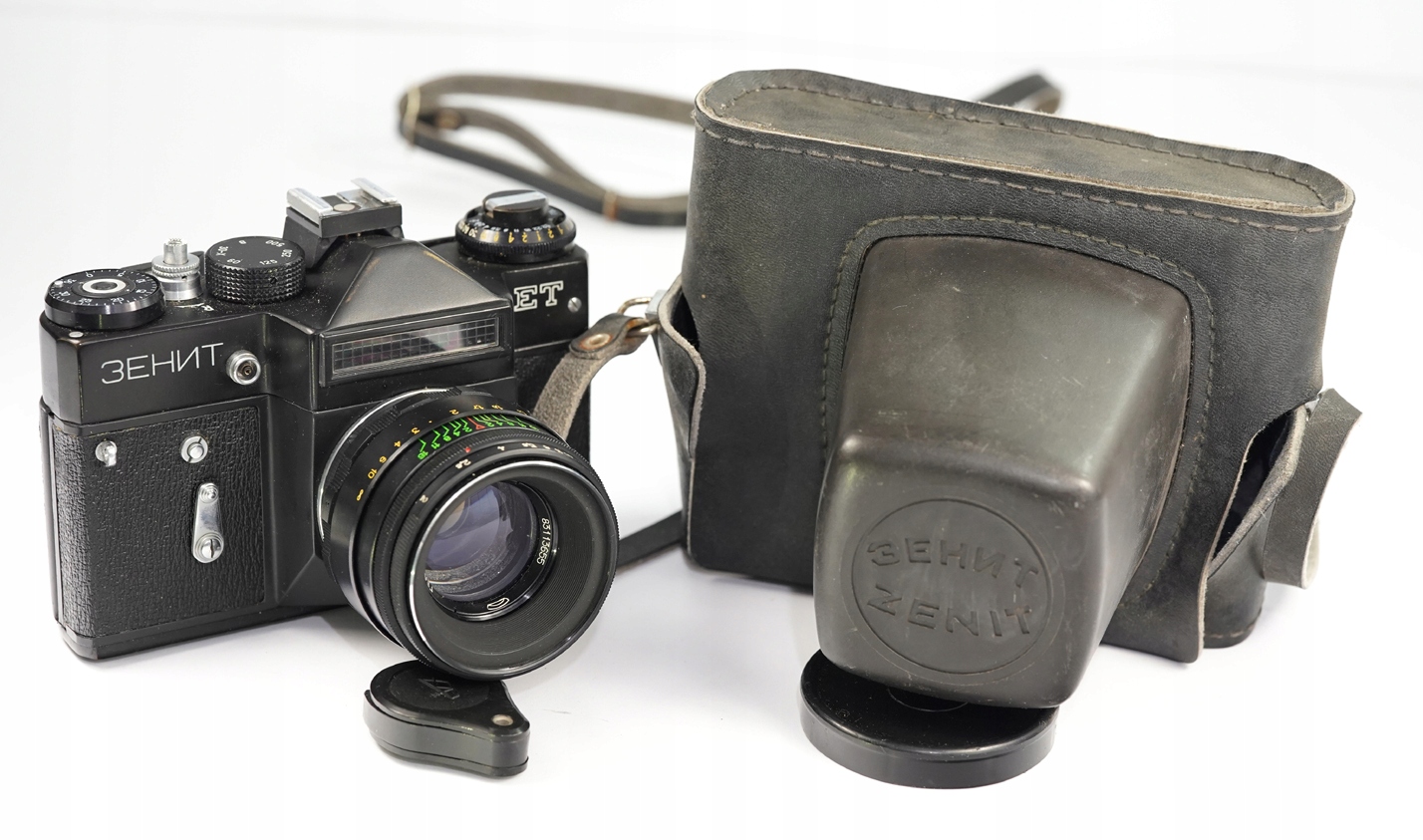 Оригінальний, дуже цікавий фотоапарат Зеніт 12 ЕТ з об'єктивом Геліос 44-2 2/58 та оригінальним футляром. Хороший + стан, фотоапарат у хорошому стані, майже не використовувався, фотоапарат укомплектований, справний, об’єктив оптично справний, скло чисте, кільце діафрагми працює бездоганно, фокус подібний, об’єктив дуже добре працює при під’єднанні до дзеркальної фотокамери Canon, фотографії чіткі та правильні кольори. Рекомендую, оригінальна, рідкісна річ за доступною ціною. Надзвичайно цікавий рідкісний оригінальний предмет. Стан добре видно на фото в описі аукціону.