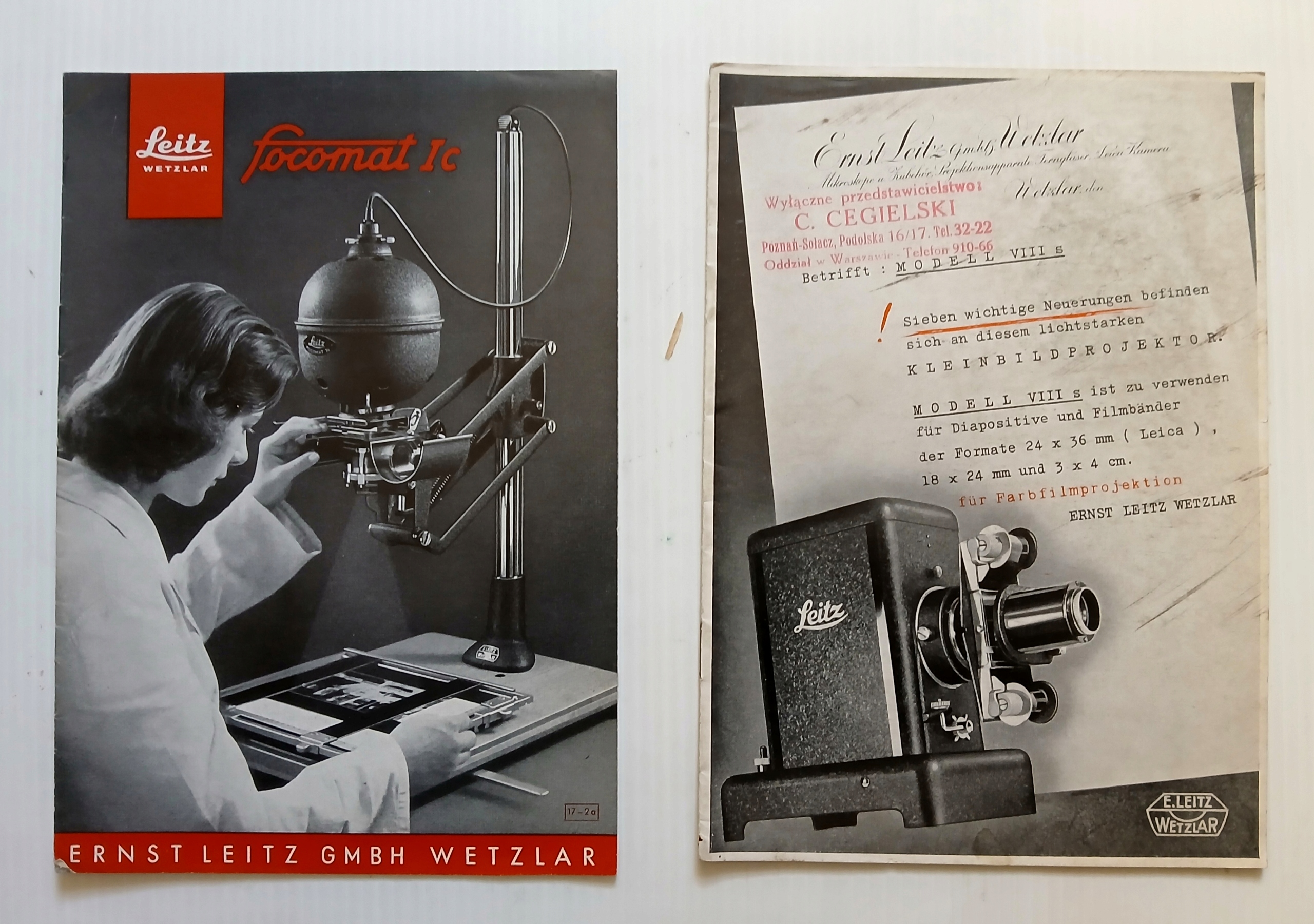 ПЕРСПЕКТИВИ LEITZ WETZLAR: LEICA PROJEKTION ТА FOCOMAT МІСТЯТЬ ОПИС ЗБІЛЬШЕНЬ ТА ПРОЕКТОРІВ LETZ WETZLAR. ФОРМАТ5. СТОРІНКИ 12 ТА 16. ПЕРСПЕКТИВИ ВІД КОМПАНІЇ C.CEGIELSKI POZNAŃ. ПРАЙС-ЛИСТ СТОРІНКИ 4.