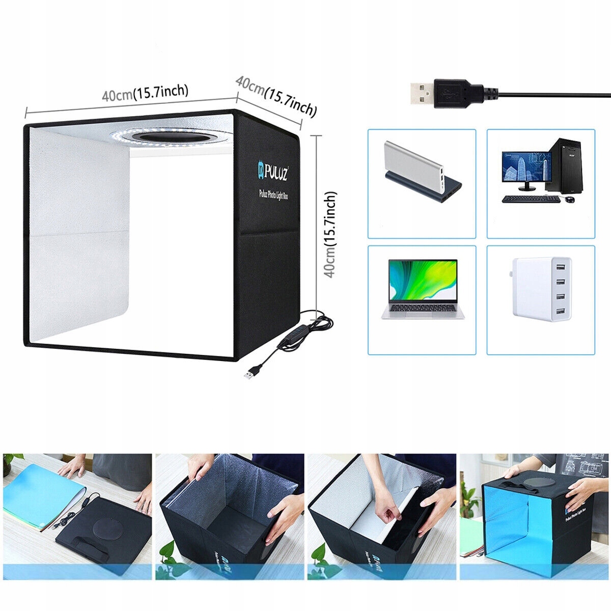 Портативний фотонабір 40x40x40 см, набір для фотостудії, коробка для фотозйомки зі світлодіодним підсвічуванням, 12 кольорів