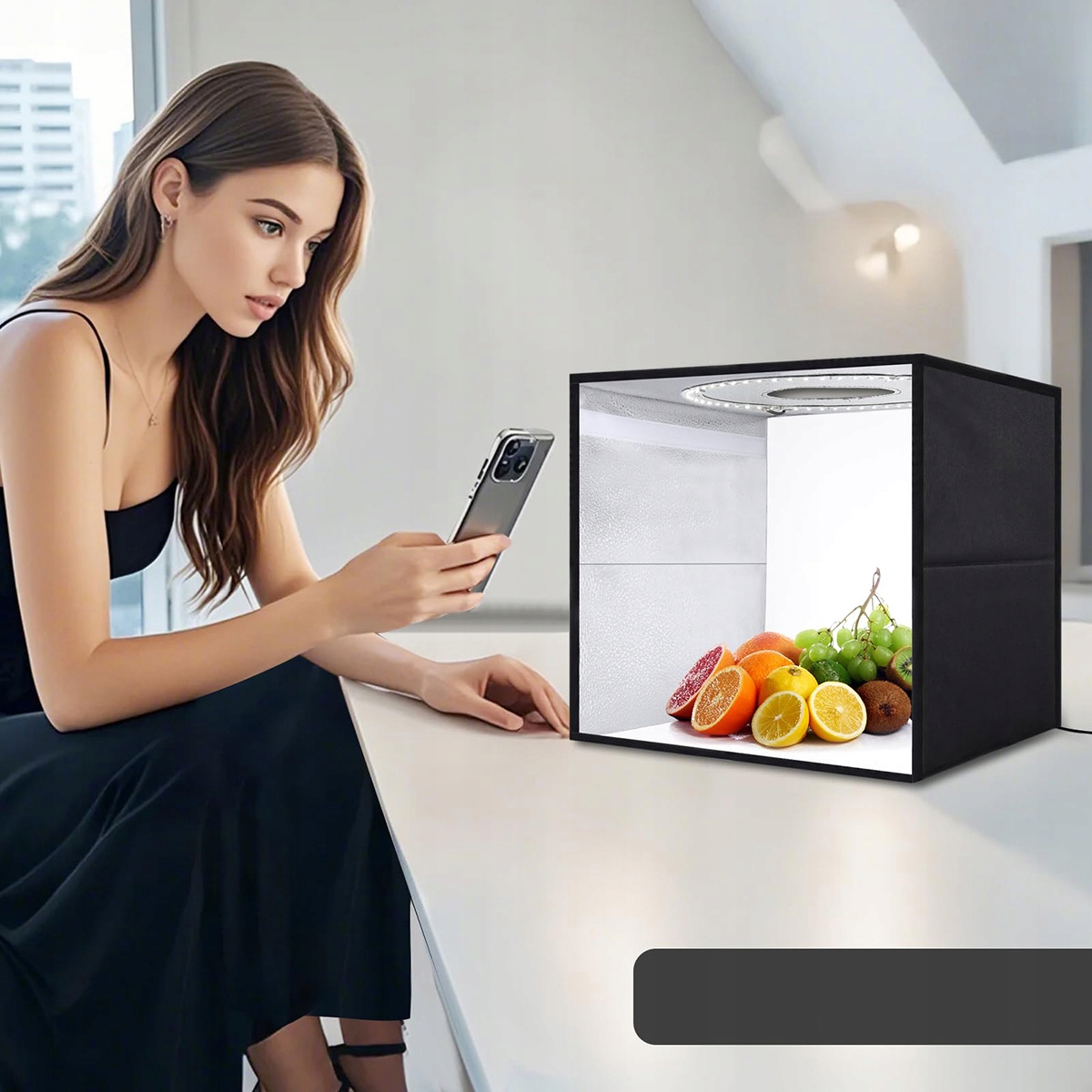 【Складна конструкція та легке складання】 Лише за три секунди складання ви можете розгорнути цей світлодіодний студійний ліхтар і розмістити його на будь-якій поверхні, створюючи ідеальний фон для фотографування невеликих предметів або продуктів.