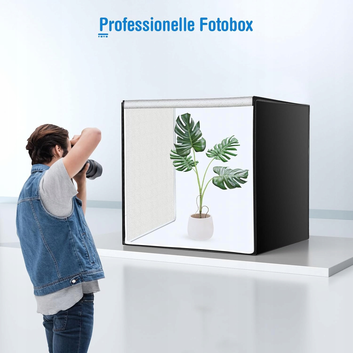 насолоджуйтесь клієнтами з прекрасними фотографіями з нашою Photo -омбром. Компактна світлова коробка з розмірами 100 х 100 х 100 см забезпечує відмінне світлодіодне освітлення 384 шт. При температурі кольору 5500-6000 К, ідеально підходить для фотографії.