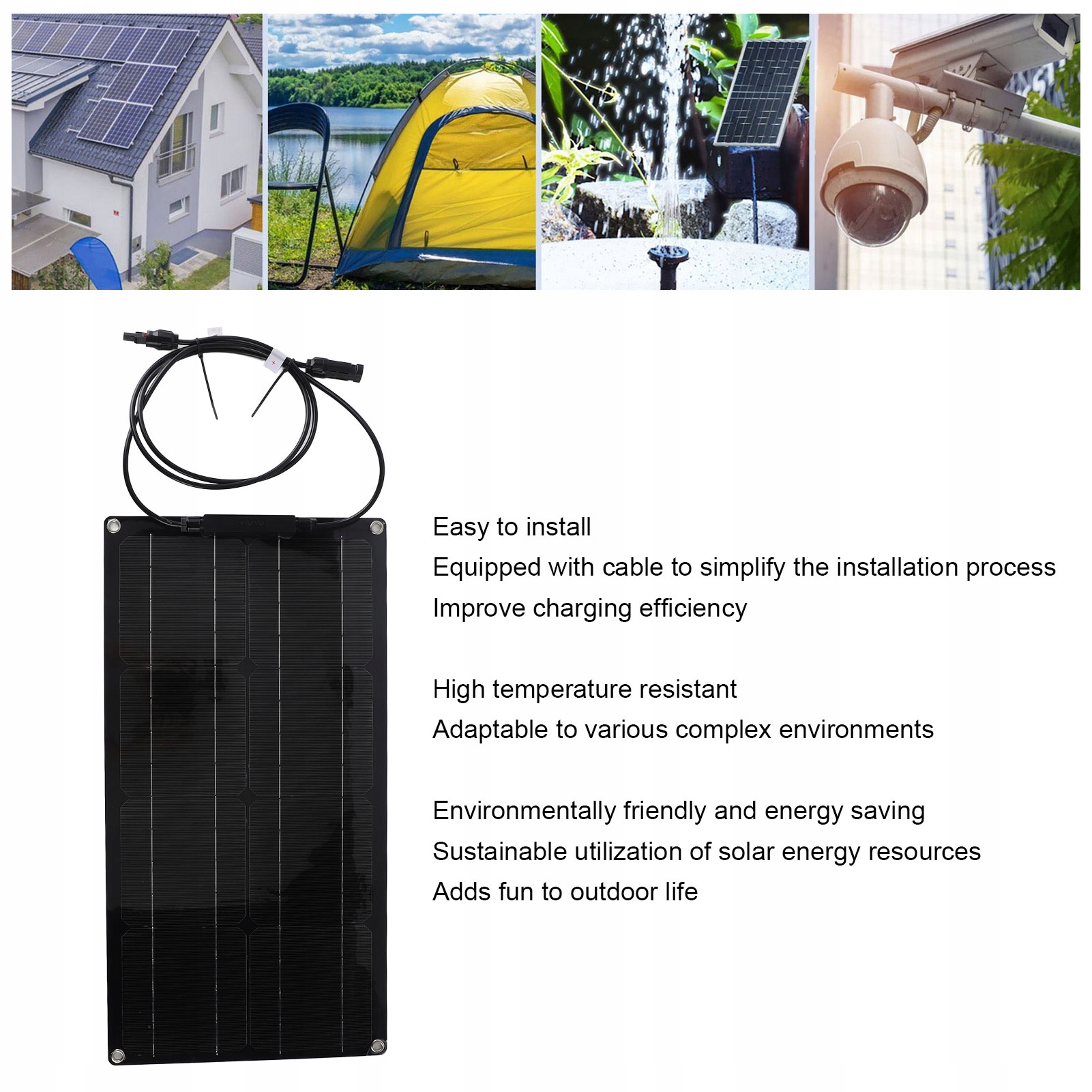 Сонячна панель потужністю 100 Вт, монокристалічна, легка, портативна сонячна панель зарядного пристрою зі шнуром для даху намету автофургону, чорна