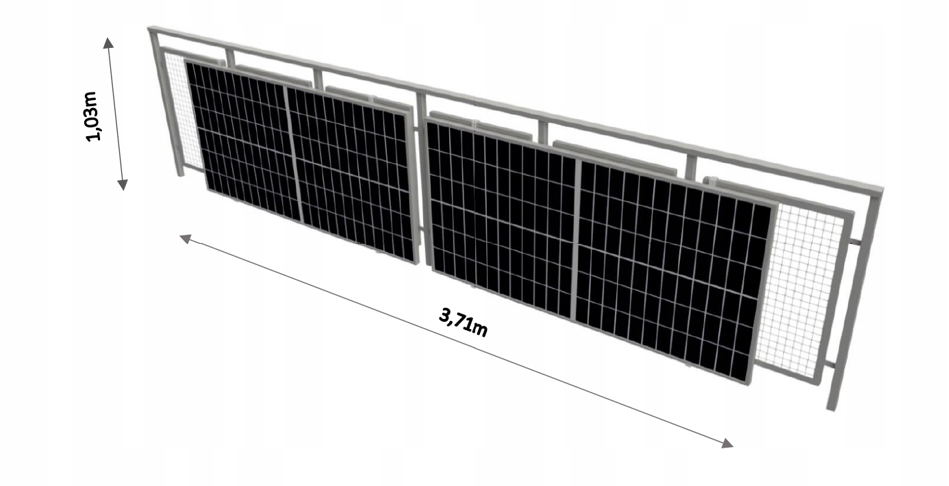 Кожна панель має розміри 1855 мм x 1030 мм, що становить установку довжиною 3,71 м. p>