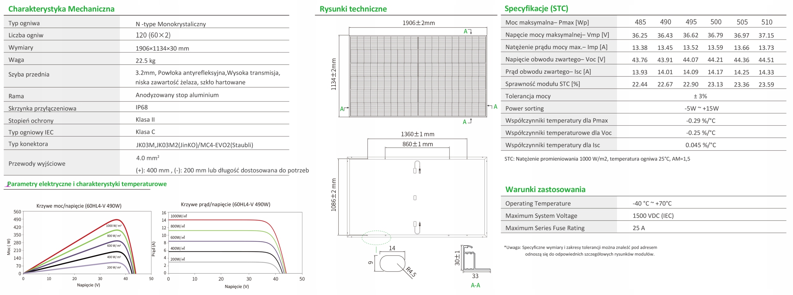 - 14 штук монокристалічних панелей Панелі JINKO 490/500W (залежно від наявності)