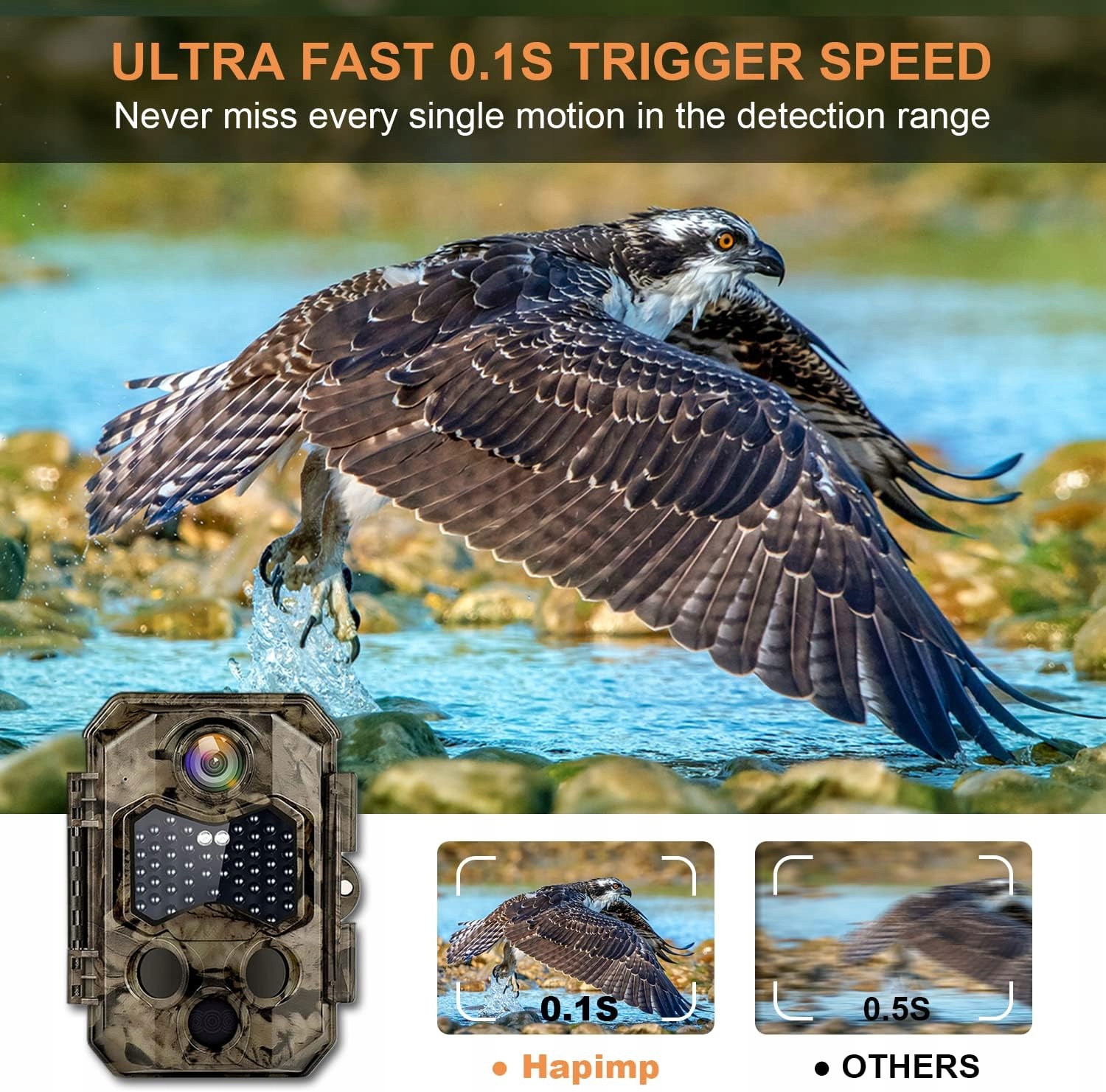 порівняно з найкращими камерами для фотографування дикої природи на ринку, сонячна енергія, що живлять стежку Hapimp Ph810W, перевищує якість відео, так і термін батареї. HAPIMP PH810W записує 4K HD фільми на швидкість кадру 30 кадрів в секунду. Ви відчуєте більш гладкі рухи всіх захоплених диких тварин.