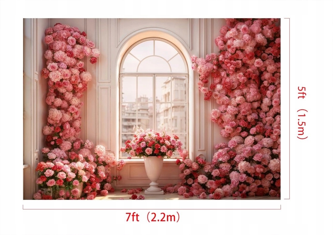 ✨✨ Фотографічний фон Весняні квіти 2,2×1,5 м – Весільний фон Рожеве вікно ✨✨